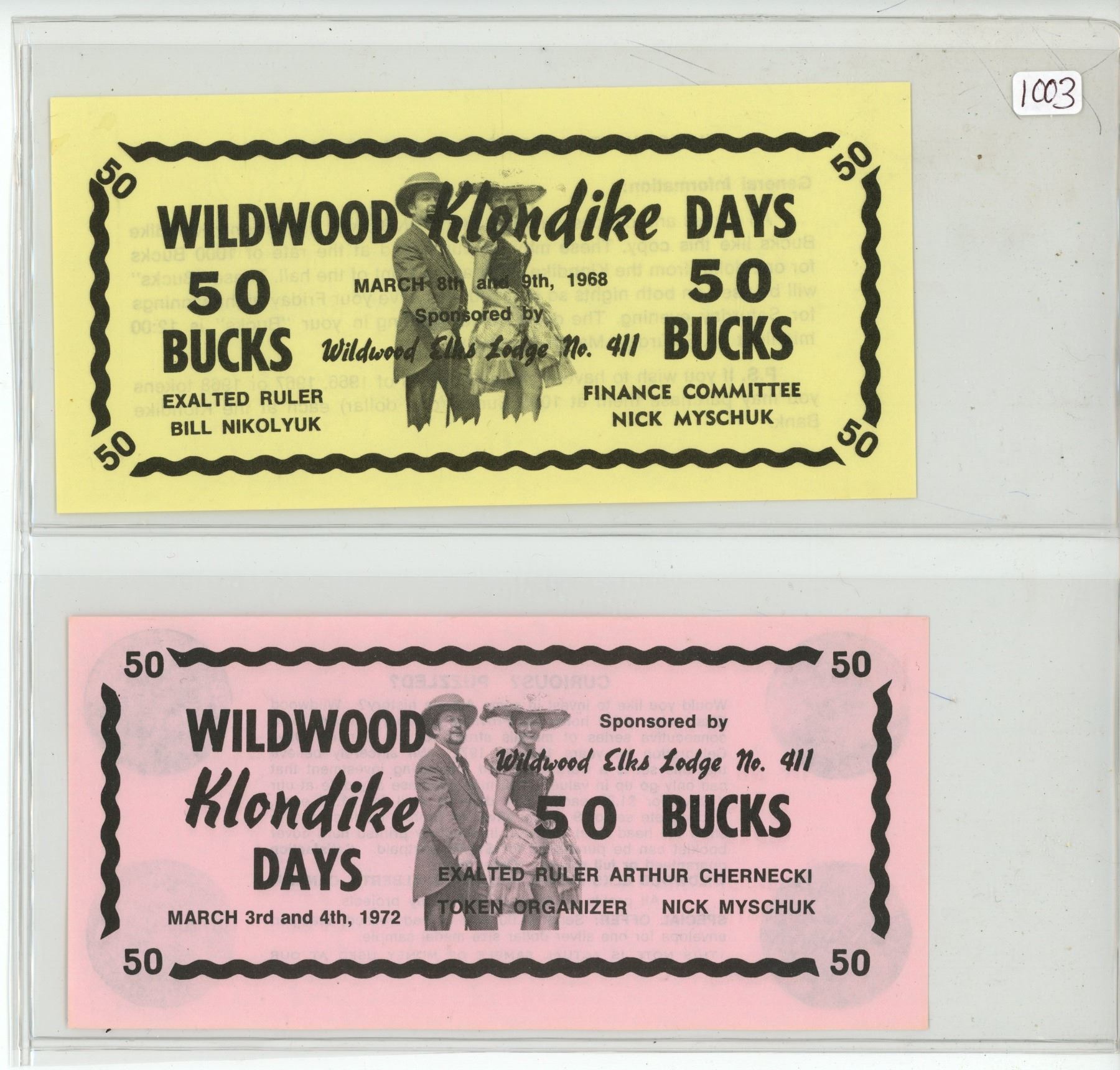 Lot of 2 Wildwood, Alberta 50 Bucks Scrip dated 1968 & 1972.