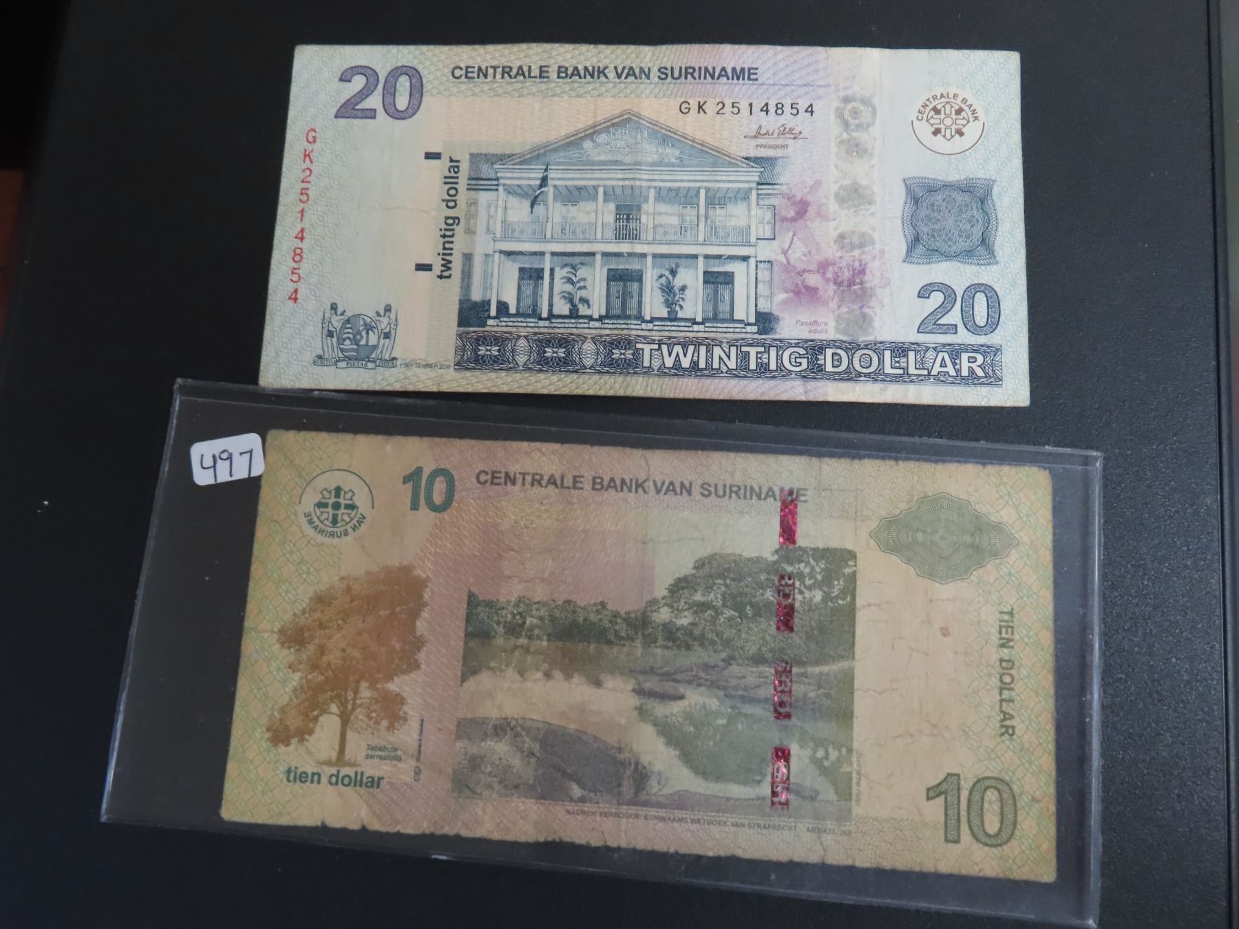Lot of 2 ten and twnety dollar central bank of suriname bills