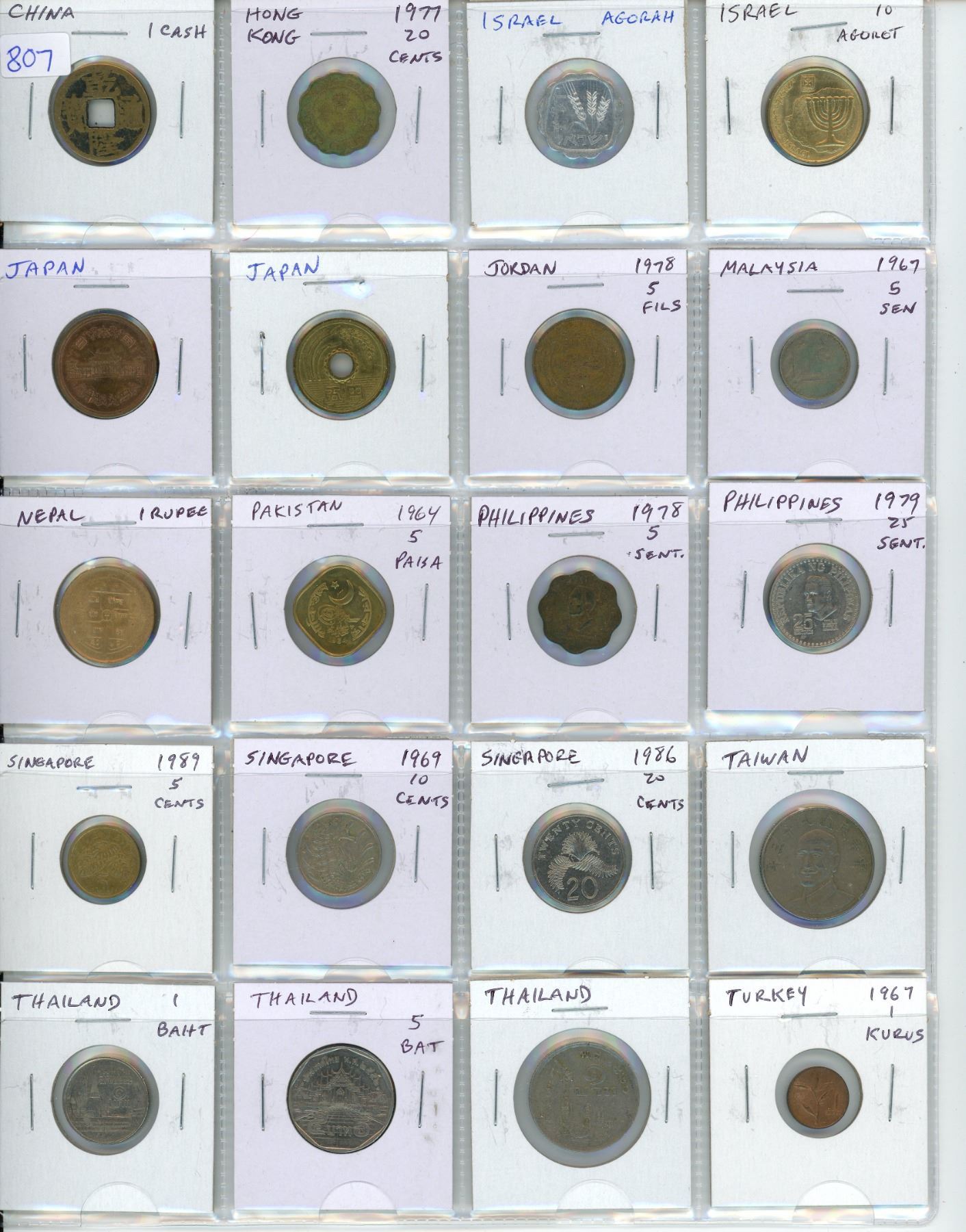 Lot of 20 Asian coins from China, Hong Kong, Israel, Japan, Jordan, Malaysia, Nepal, Pakistan, Philippines, Singapore, Taiwan, Thailand & Turkey.