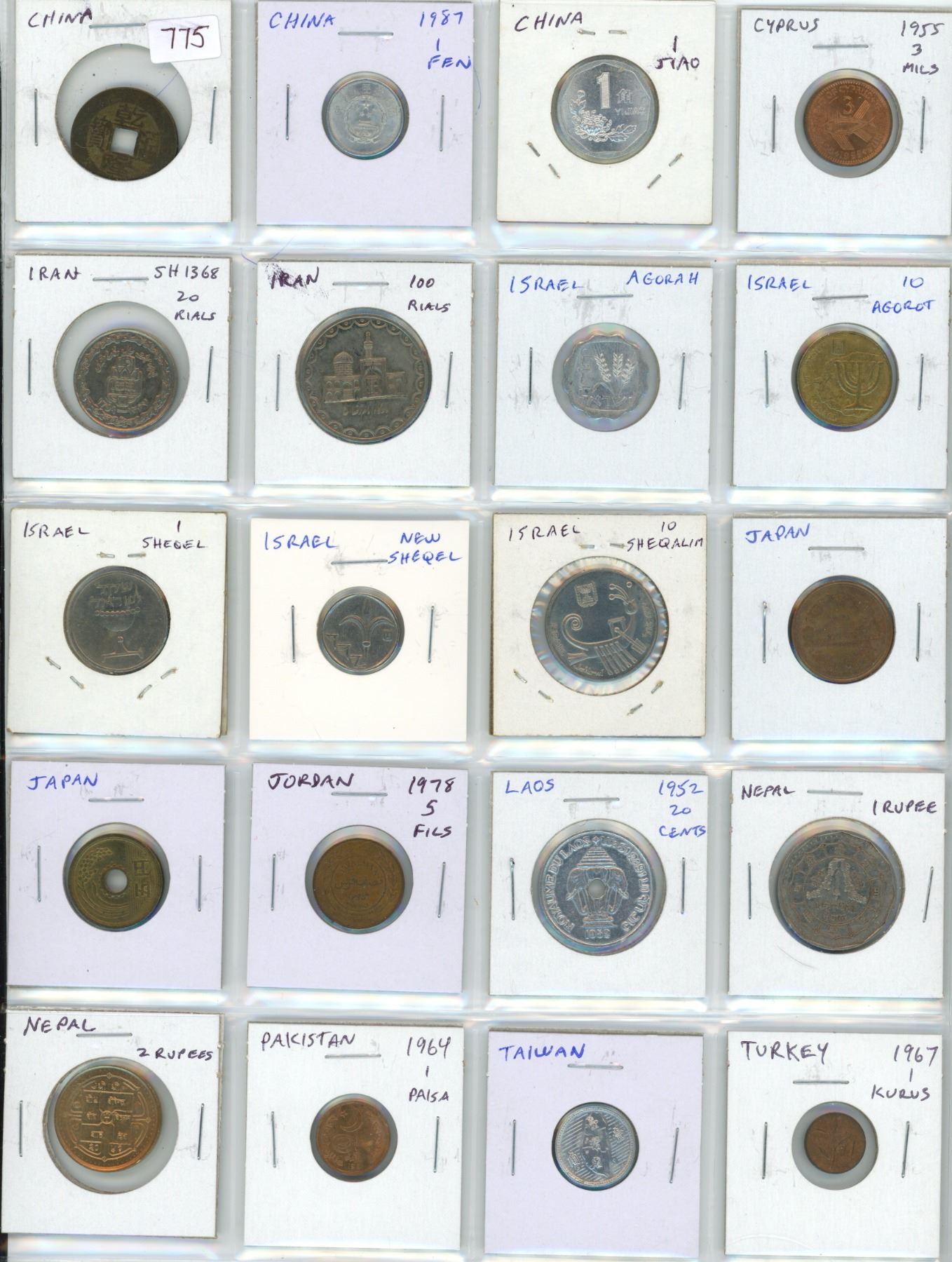 Lot of 20 Asian coins including China, Cyprus, Iran, Israel, Japan, Jordan, Laos, Nepal, Pakistan, Taiwan & Turkey.