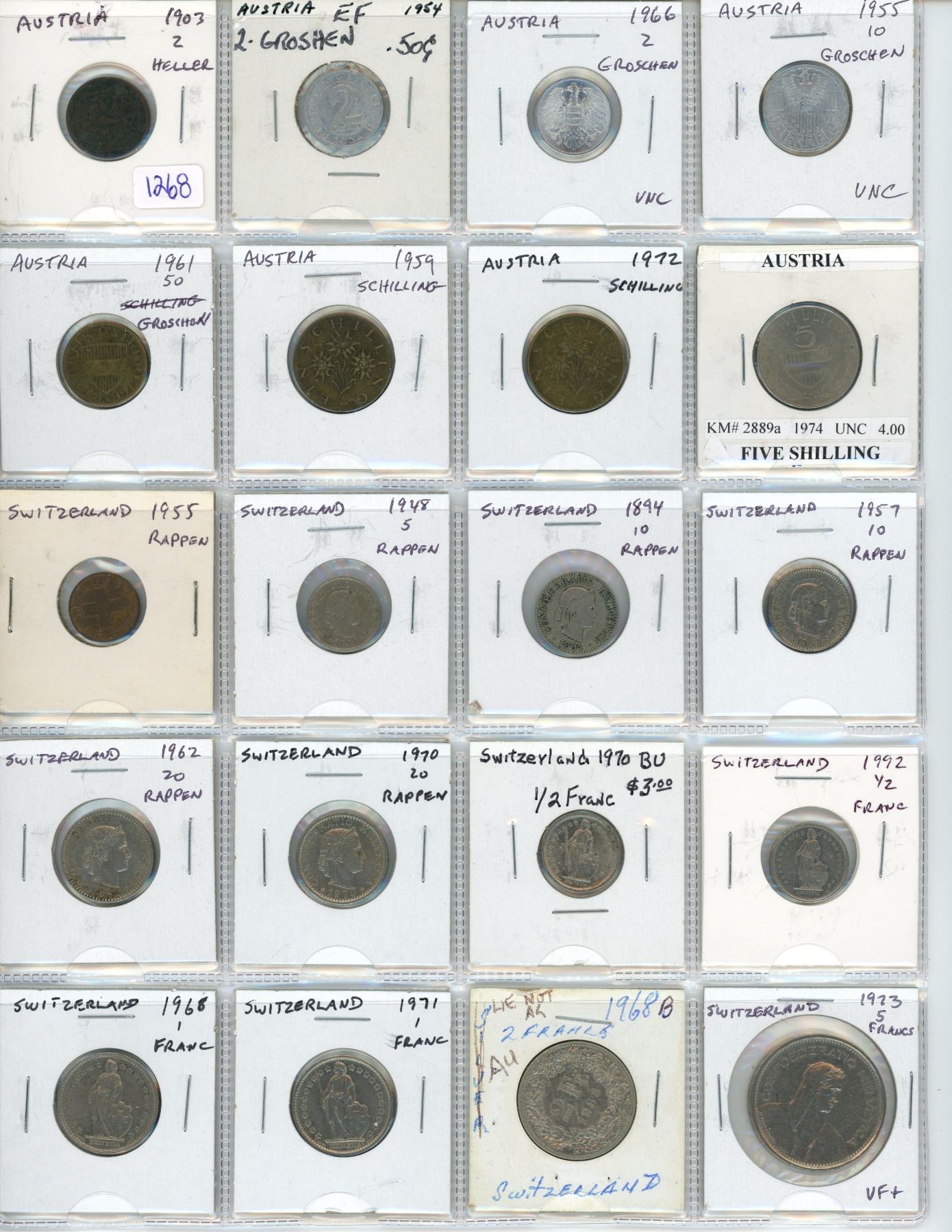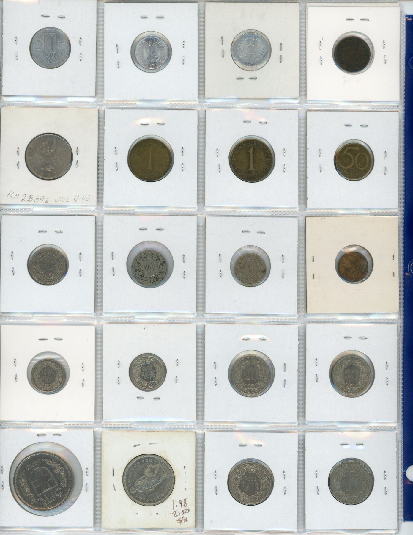 Lot of 20 Austrian and Swiss Coins. Austria includes 1903 2 Heller; Switzerland includes 1894 10 Rappen.