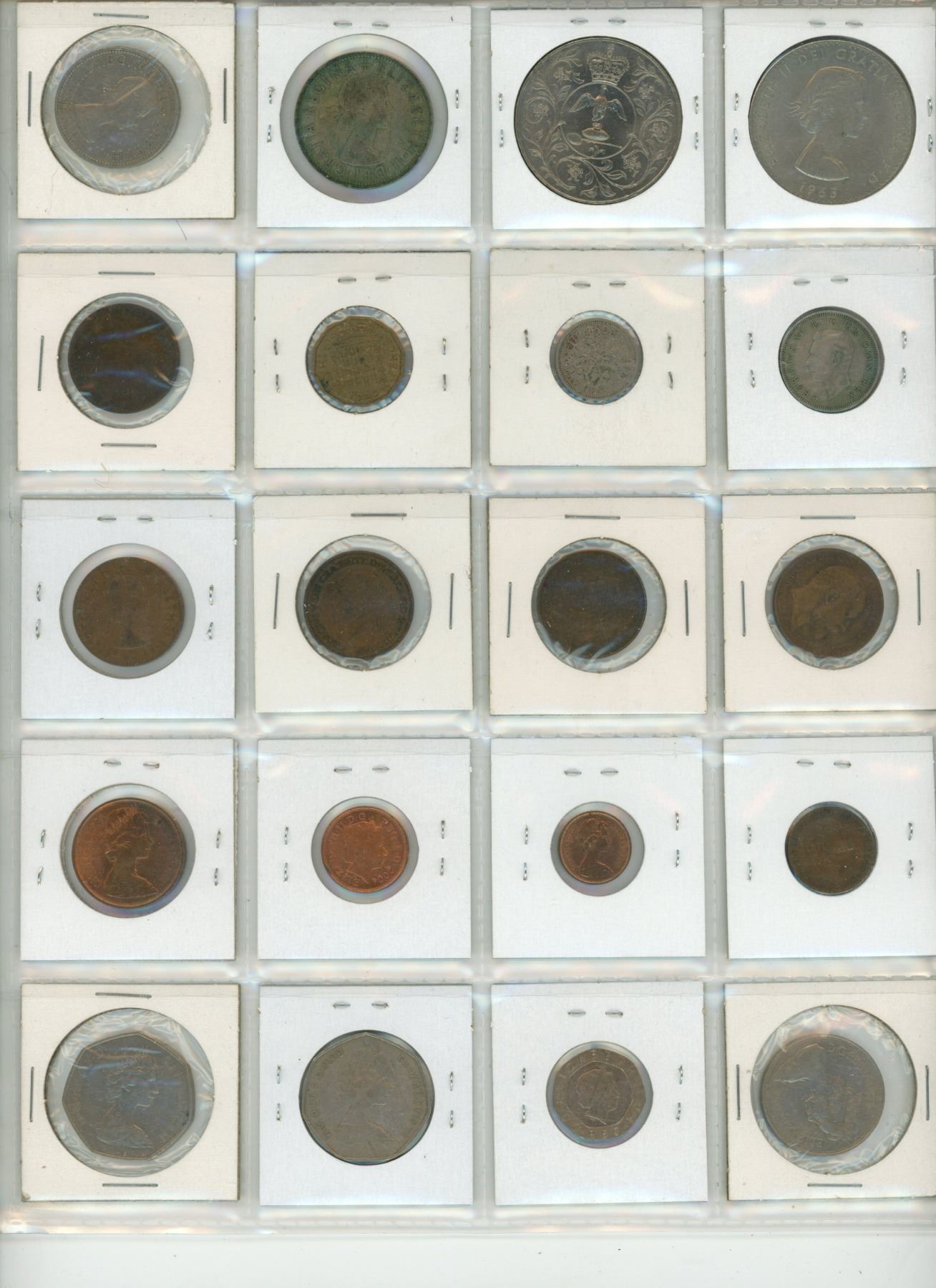 Lot of 20 British coins including Churchill & Silver Jubilee Crowns, Half Crown, 2 Shillings, Shilling, 6 Pence, 3 Pence, Half Pennies, Farthing, New Half Penny, New Penny, 2 New Pence, 10 New Pence, 20 Pence, 50 New Pence & 50 Pence.