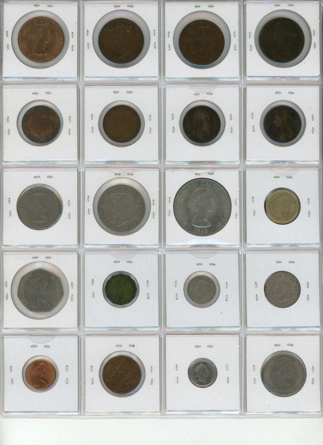 Lot of 20 British coins including Pennies, Half Pennies, Pound, Churchill Crown, Half Crown, 2 Shill