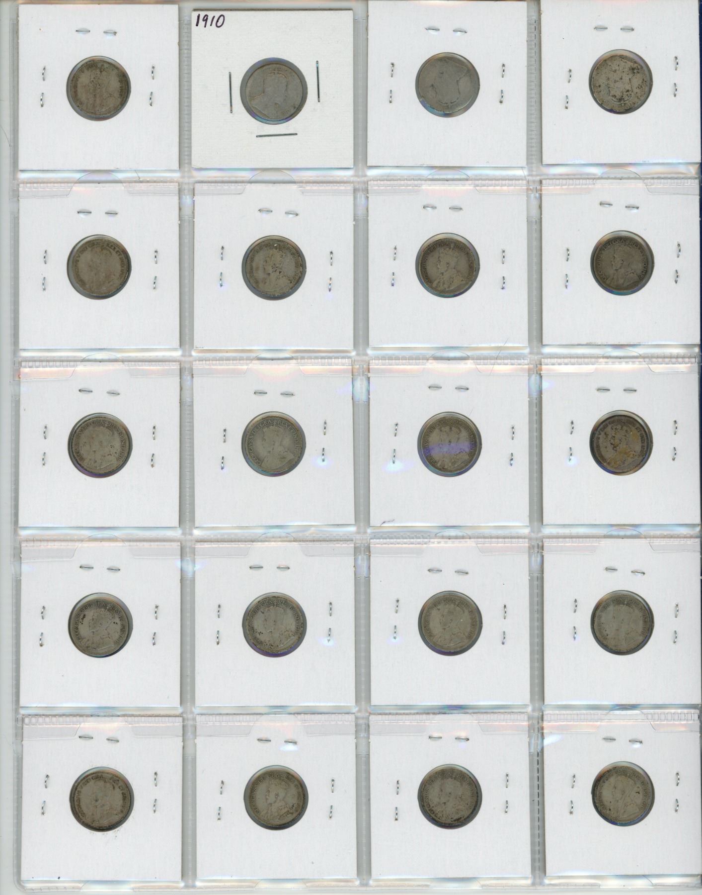 Lot of 20 Canadian Edward VII & George V Silver 10 Cents. Includes 1902, 1903, 1910, 1911, 1913 Smal