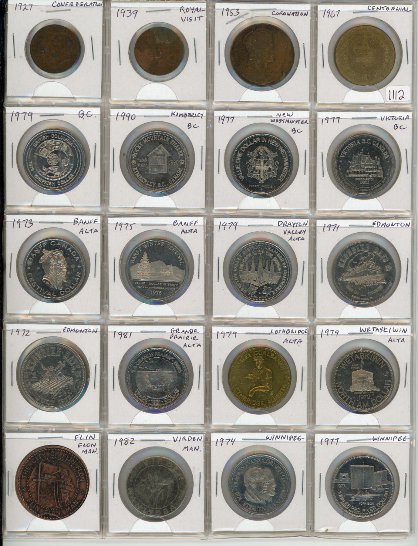 Lot of 20 Canadian Medals & Trade Dollars. Includes 1927 Confederation, 1939 Royal Visit, 1953 Coronation, 1967 Centennial, British Columbia, Alberta & Manitoba. Most are Uncirculated.