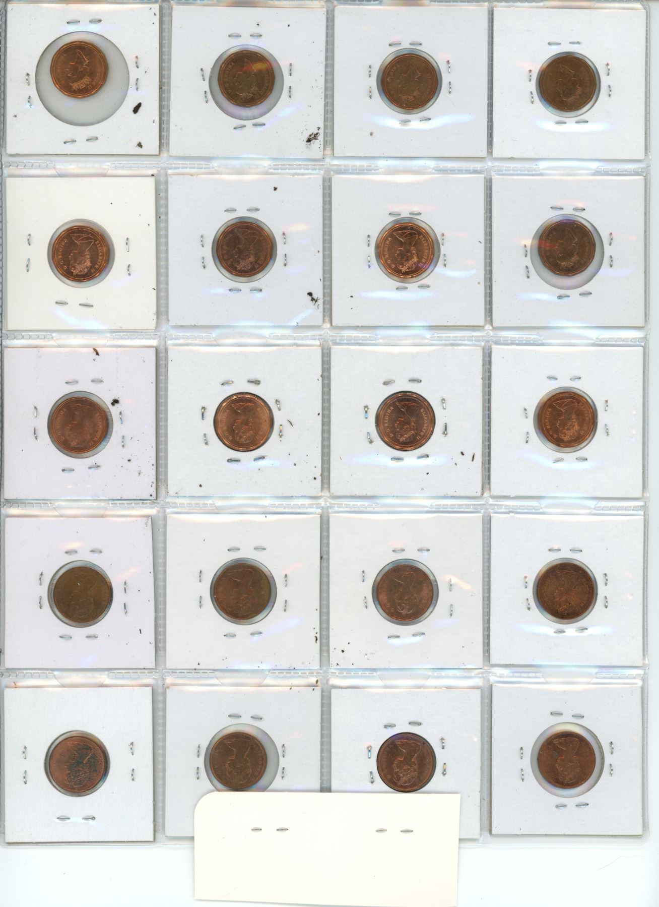 Lot of 20 Canadian Uncirculated Small Cents. Includes 1967, 1973, 1975, 1976, 1977, 1978, 1979, 1980