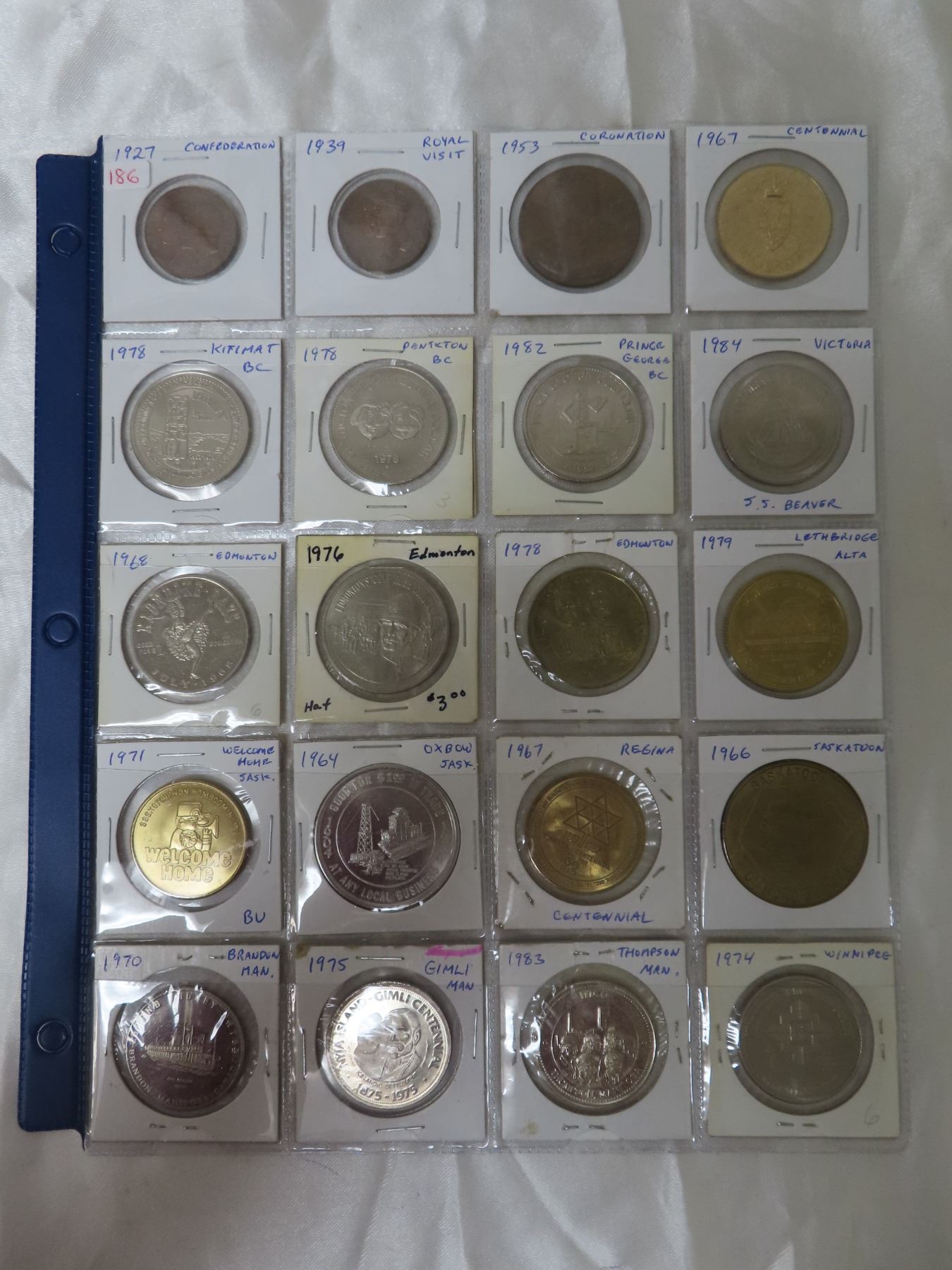 Lot of 20 Canadian medals including 1927 Confederation, 1939 Royal Visit, 1953 Coronation, 1967 Centennial plus trade dollars from British Columbia, Alberta, Saskatchewan & Manitoba.