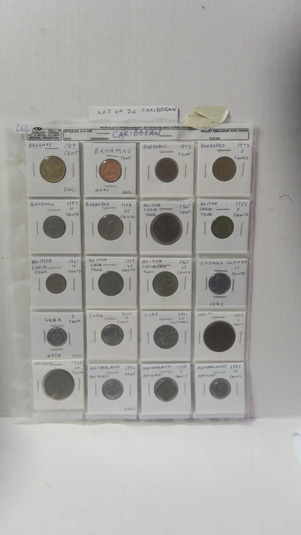 Lot of 20 Caribbean Coins from Bahamas, Barbados, British Caribbean Territories, Cayman Islands, Cub