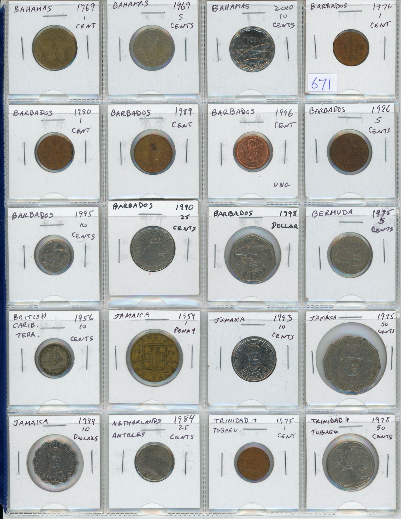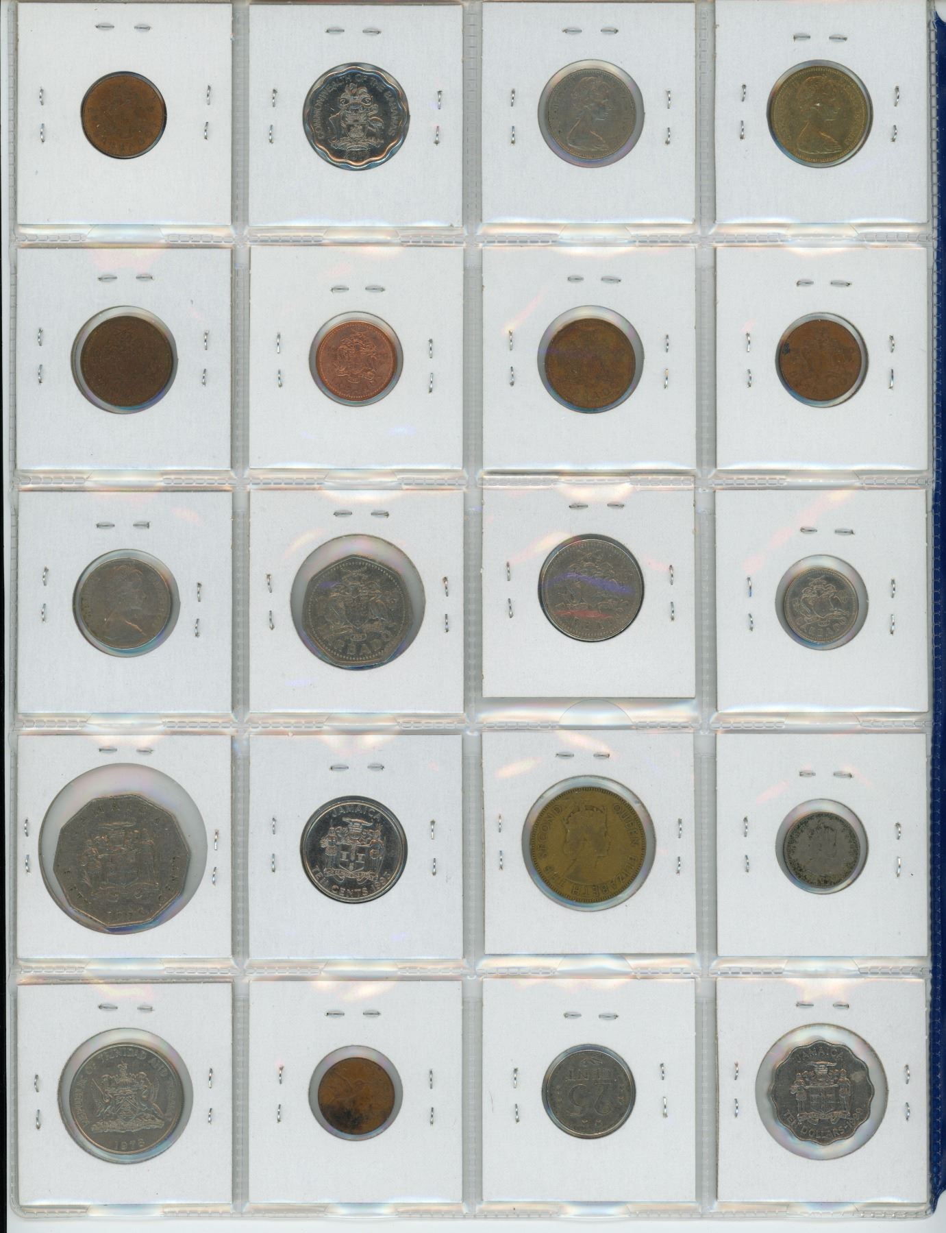 Lot of 20 Caribbean coins from Bahamas, Barbados, Bermuda, British Caribbean Territories, Jamaica, Netherland Antilles, & Trinidad & Tobago.