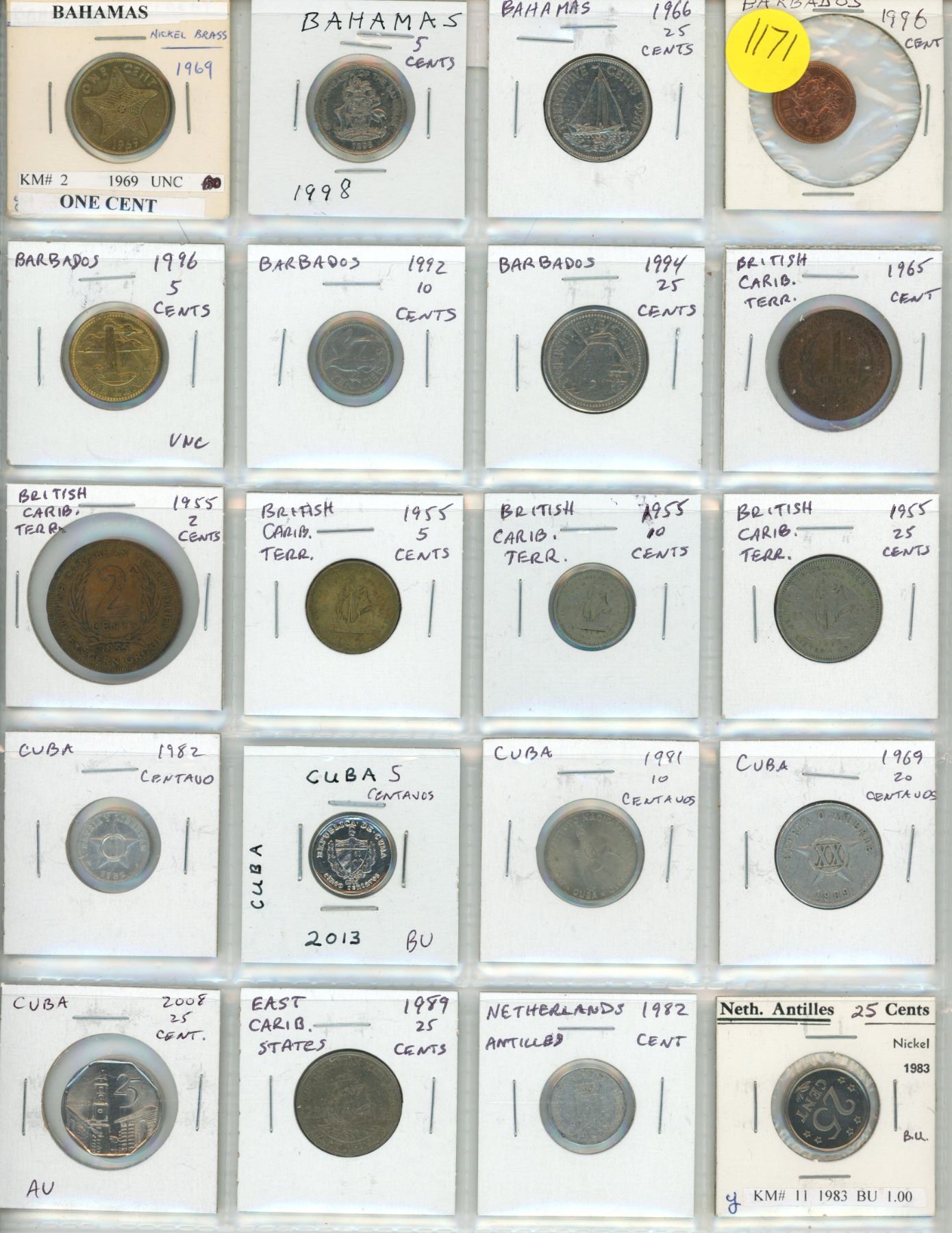 Lot of 20 Caribbean coins from Bahamas, Barbados, British Caribbean Territories, Cuba, East Caribbean States & Netherlands Antilles. Several are Uncirculated or BU.