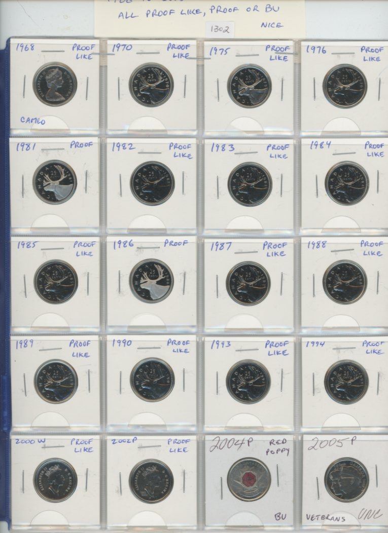 Lot of 20 Collector 25 Cents: Includes 1968, 1970, 1975, 1976, 1981, 1982, 1983, 1984, 1985, 1986, 1987, 1988, 1989, 1990, 1993, 1994, 2000W, 2002P, 2004P Red Poppy, 2005P Veterans. All are Proof Like, Proof or BU. A nice selection.