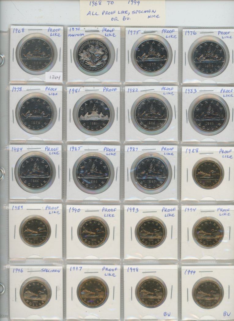 Lot of 20 Collector Nickel Dollars and Loonies: 11 Nickel Dollars include 1968, 1970 Manitoba, 1975, 1976, 1978, 1981, 1982, 1983, 1984, 1985 & 1987. 9 Loonies include 1988, 1989, 1990, 1993, 1994, 1996, 1997, 1998, 1999. All are Proof Like, Specimen, Proof or BU. A nice selection.