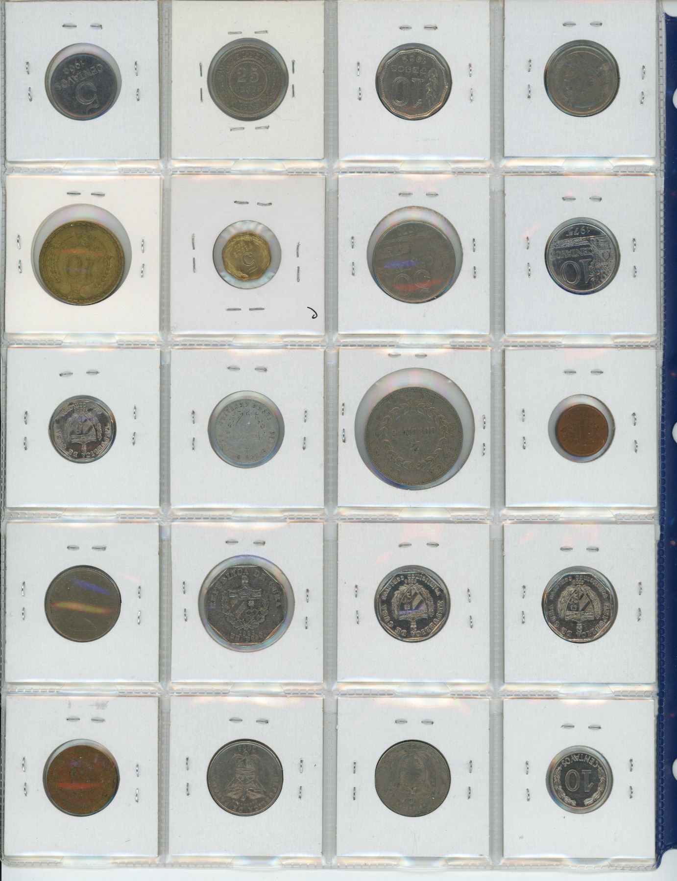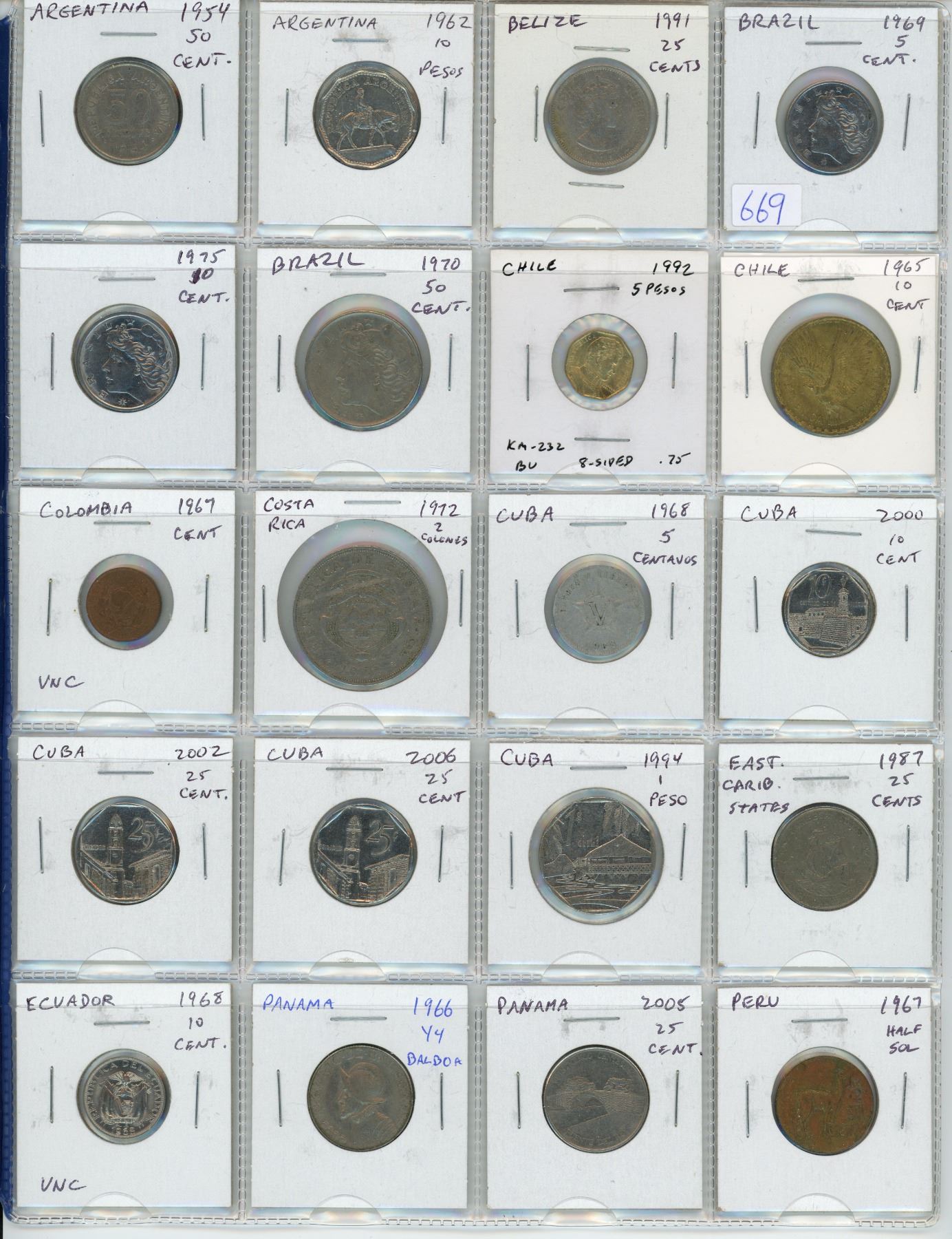 Lot of 20 Latin American coins from Argentina, Belize, Brazil, Chile, Colombia, Costa Rica, Cuba, East Caribbean States, Ecuador, Panama & Peru.