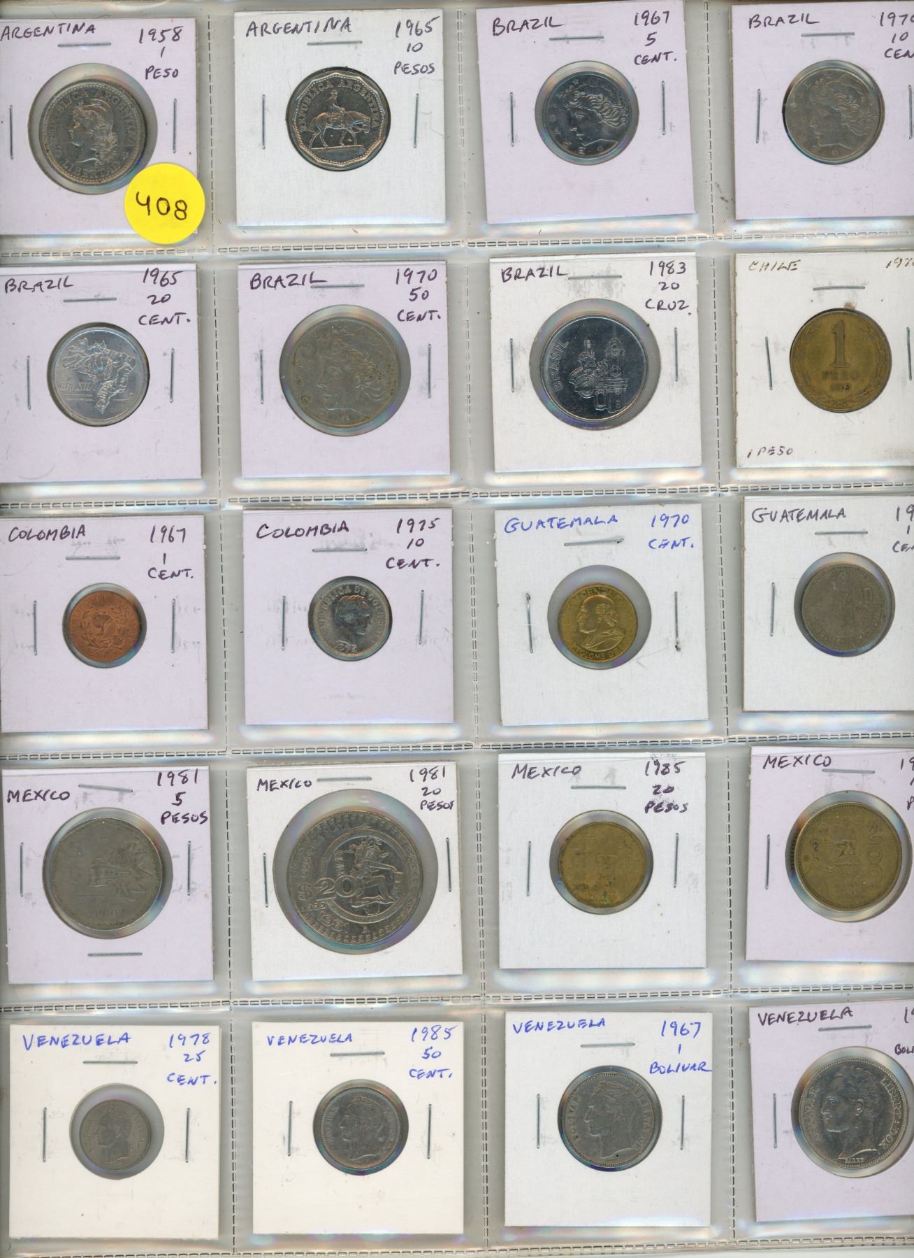 Lot of 20 Latin American coins from Argentina to Venezuela.