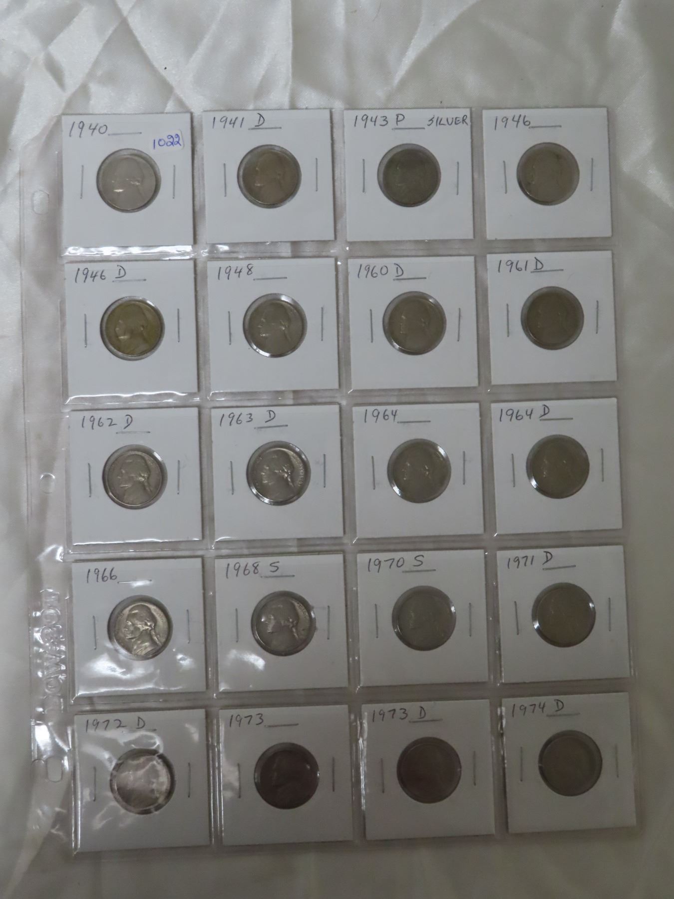 Lot of 20 U.S. Jefferson Nickels. Includes 1940, 1941D, 1943P Silver, 1946, 1946D, 1948, 1960D, 1961