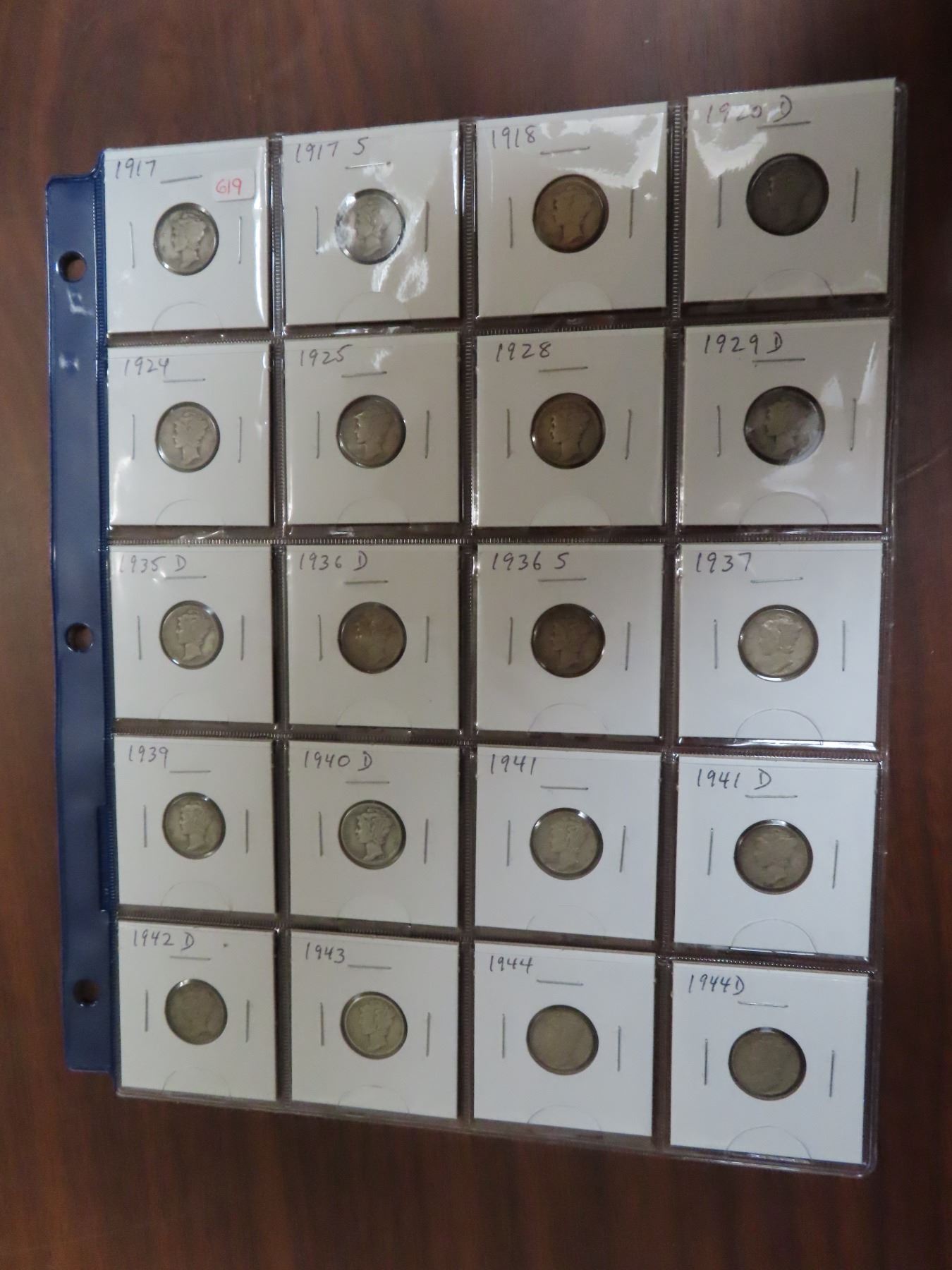 Lot of 20 U.S. Silver Mercury Dimes. Includes 1917, 1917S, 1918, 1920D, 1924, 1925, 1928, 1929D, 1935D, 1936D, 1936S, 1937, 1939, 1940D, 1941, 1941D, 1942D, 1943, 1944 & 1945.