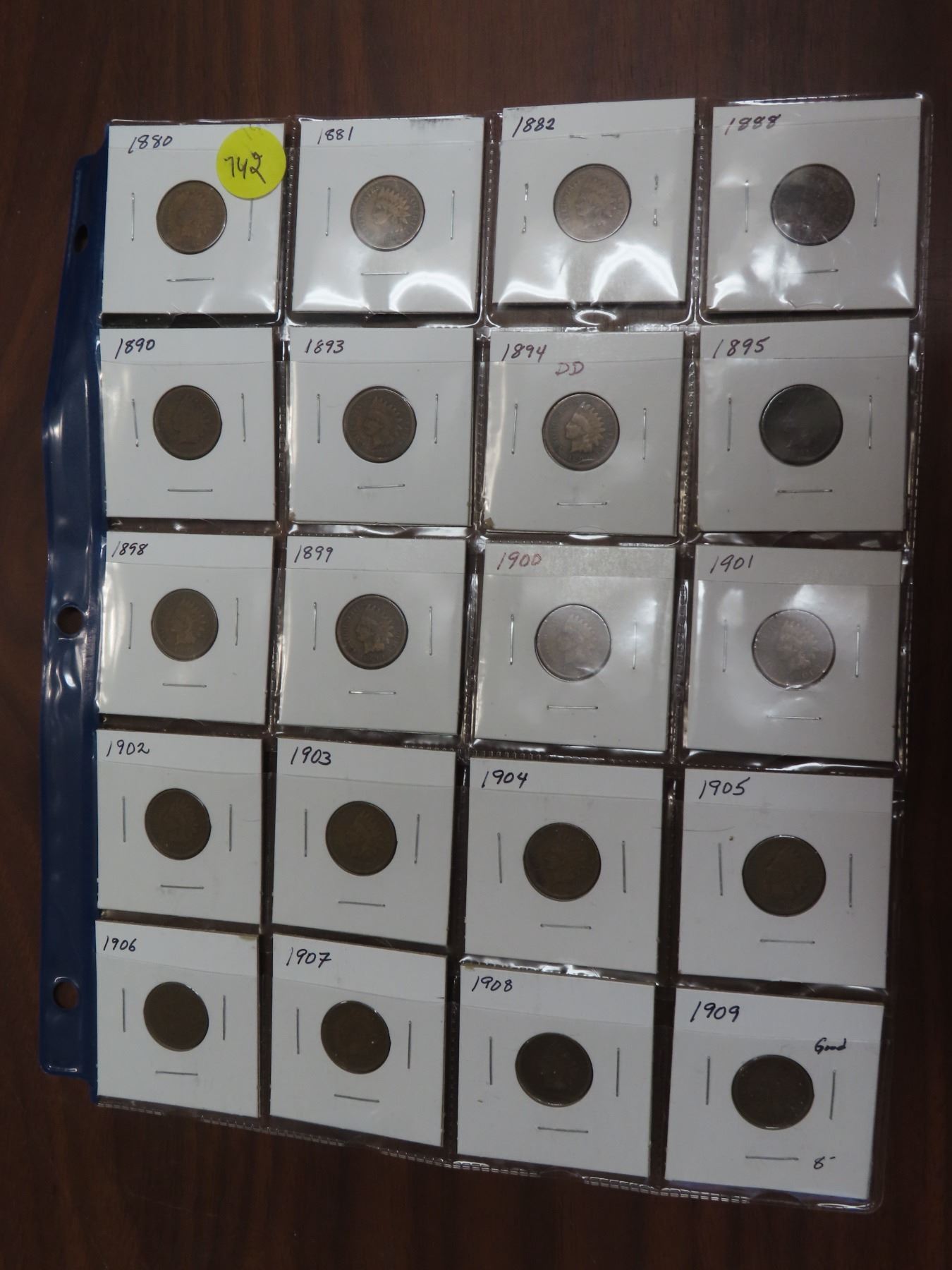 Lot of 20 USA 'Indian Head' Pennies: includes years 1880 to 1909