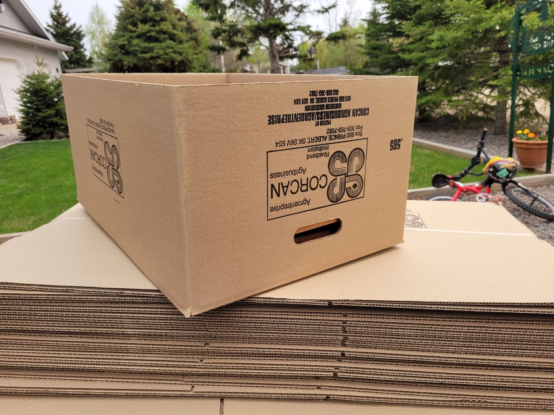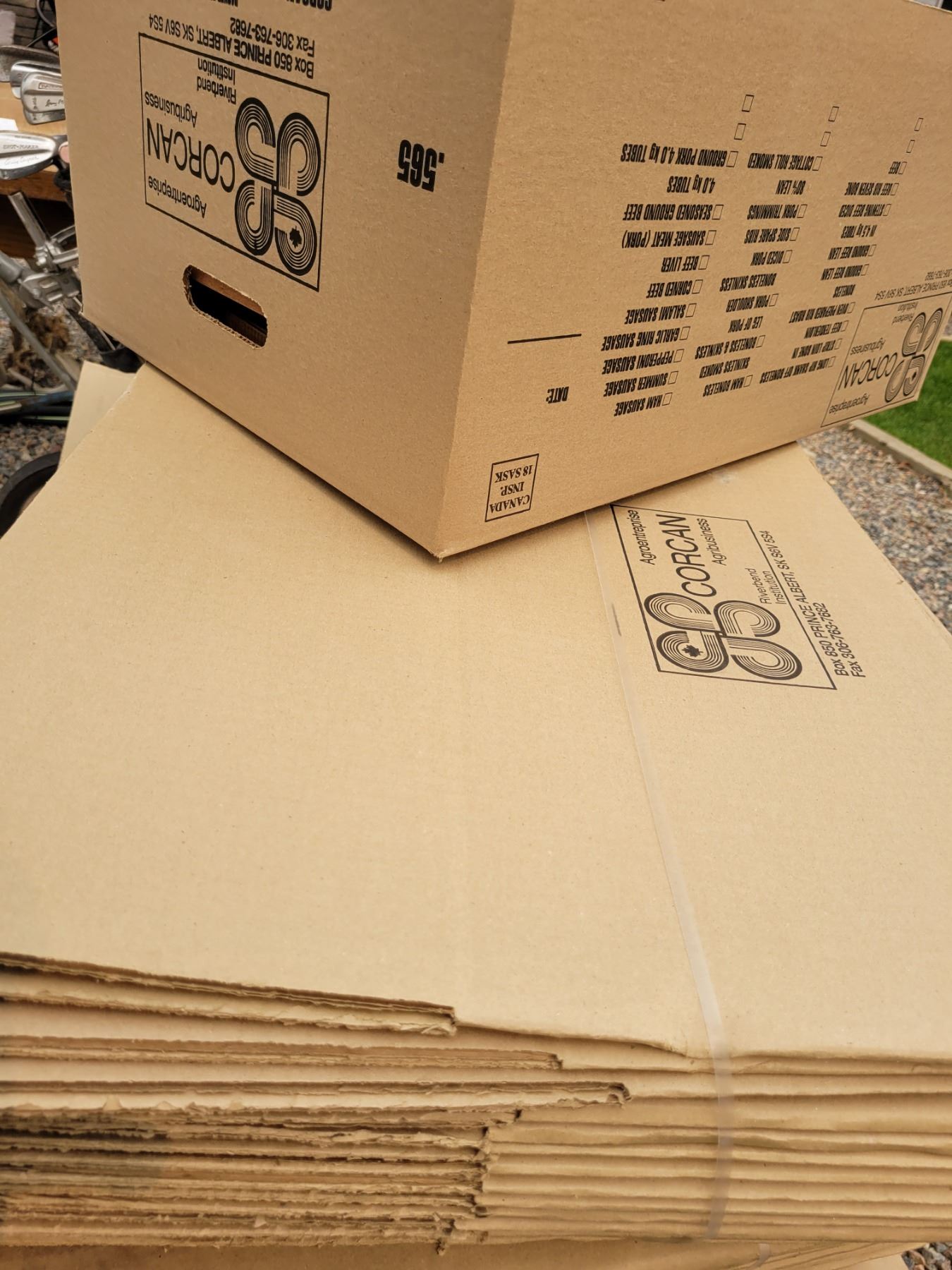 Lot of 20 brand new fold out meat boxes - 23"x16"x11" when assembled. 2 cut out handles, great for moving, packing, storage, etc.