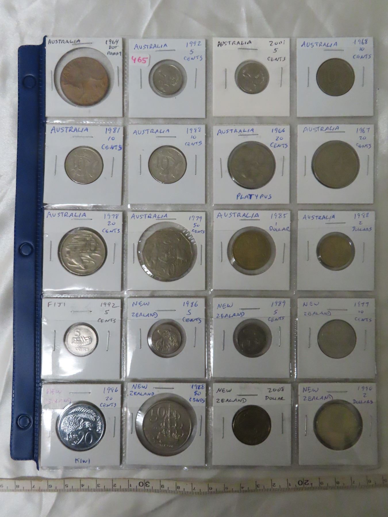 Lot of 20 coins from Australia (including dollar & 2 dollar coins), Fiji and New Zealand (including dollar & 2 dollar coins).