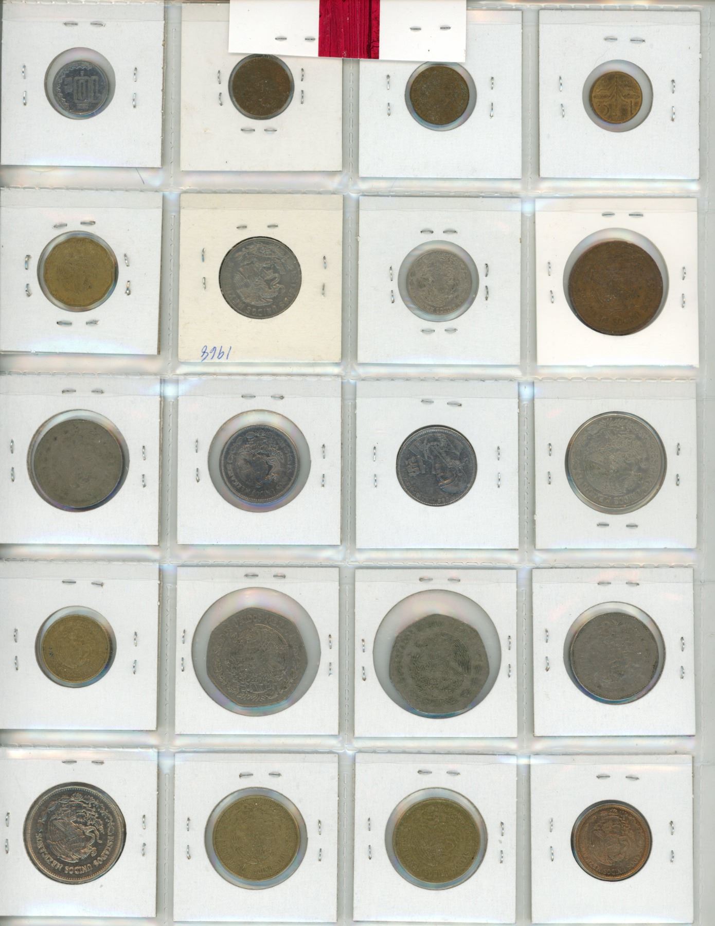 Lot of 20 different old Mexican coins including high denominations like 50 pesos, 100 pesos & 200 pesos.