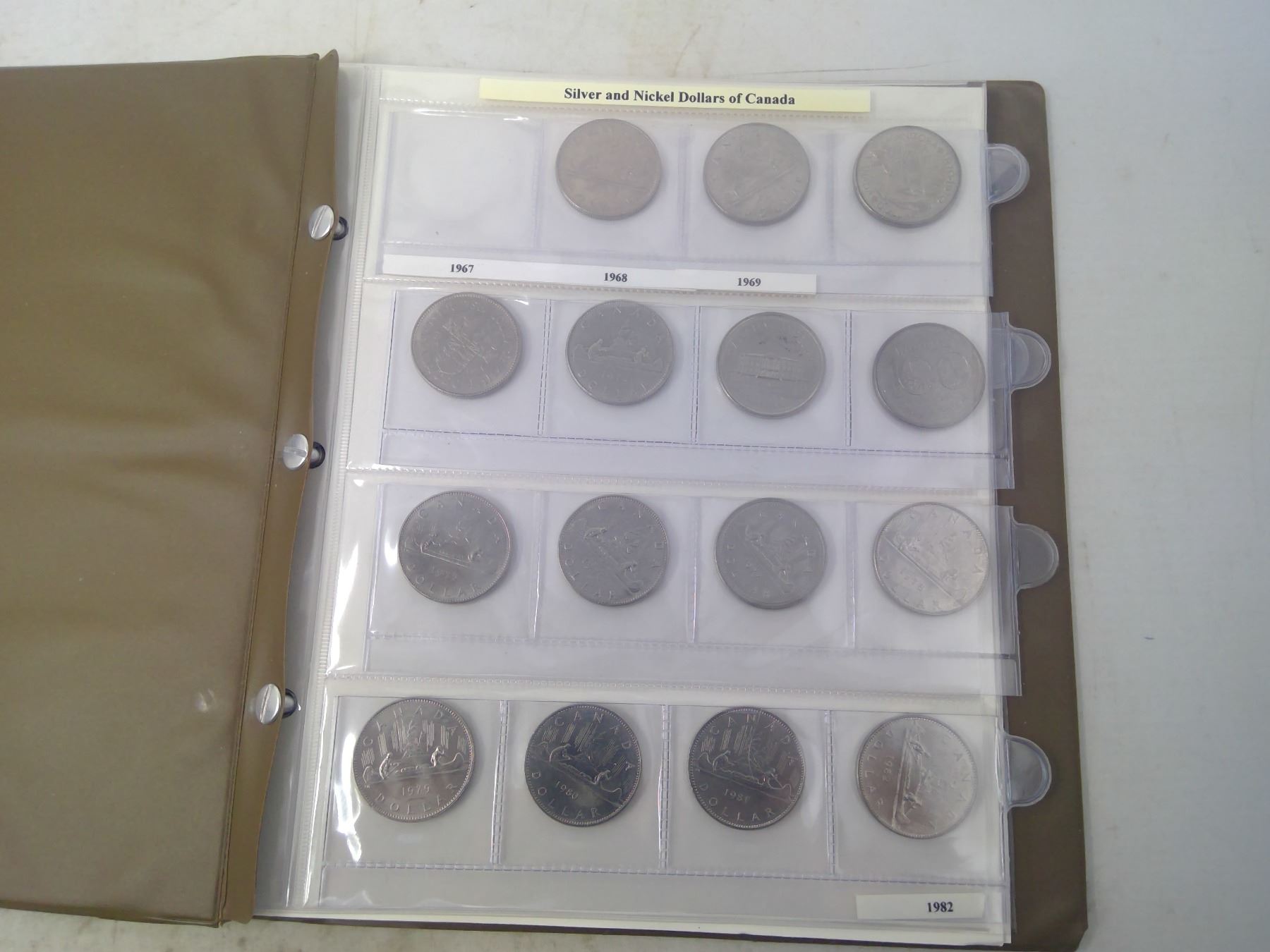 Lot of 21 different Canadian Nickel Dollars 1968 – 1987. Housed in a Uni-Safe Album. All are AU or Unc. Nice.