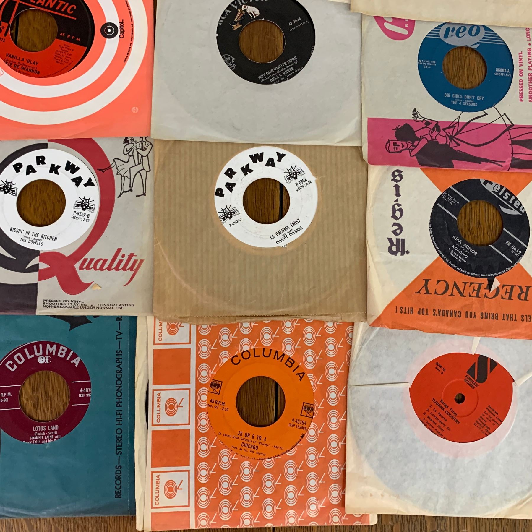 Lot of 25 VARIOUS 45RPM RECORDS CHICAGO CHUBBY CHECKER CONNIE FRANCIS and MORE