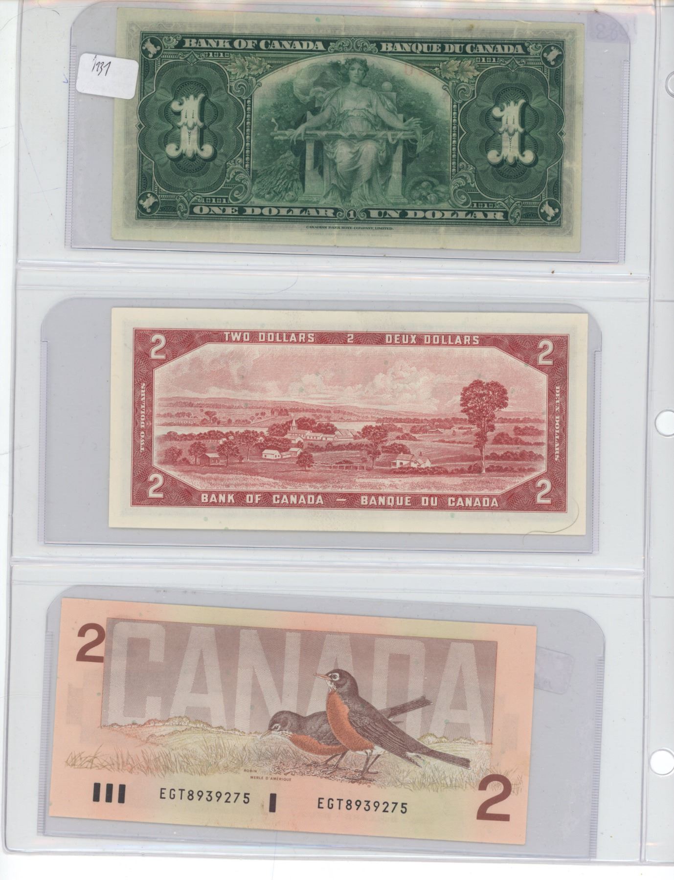 Lot of 3 (1937-$1, 1954-$2 and 1986-$2) canadian bills