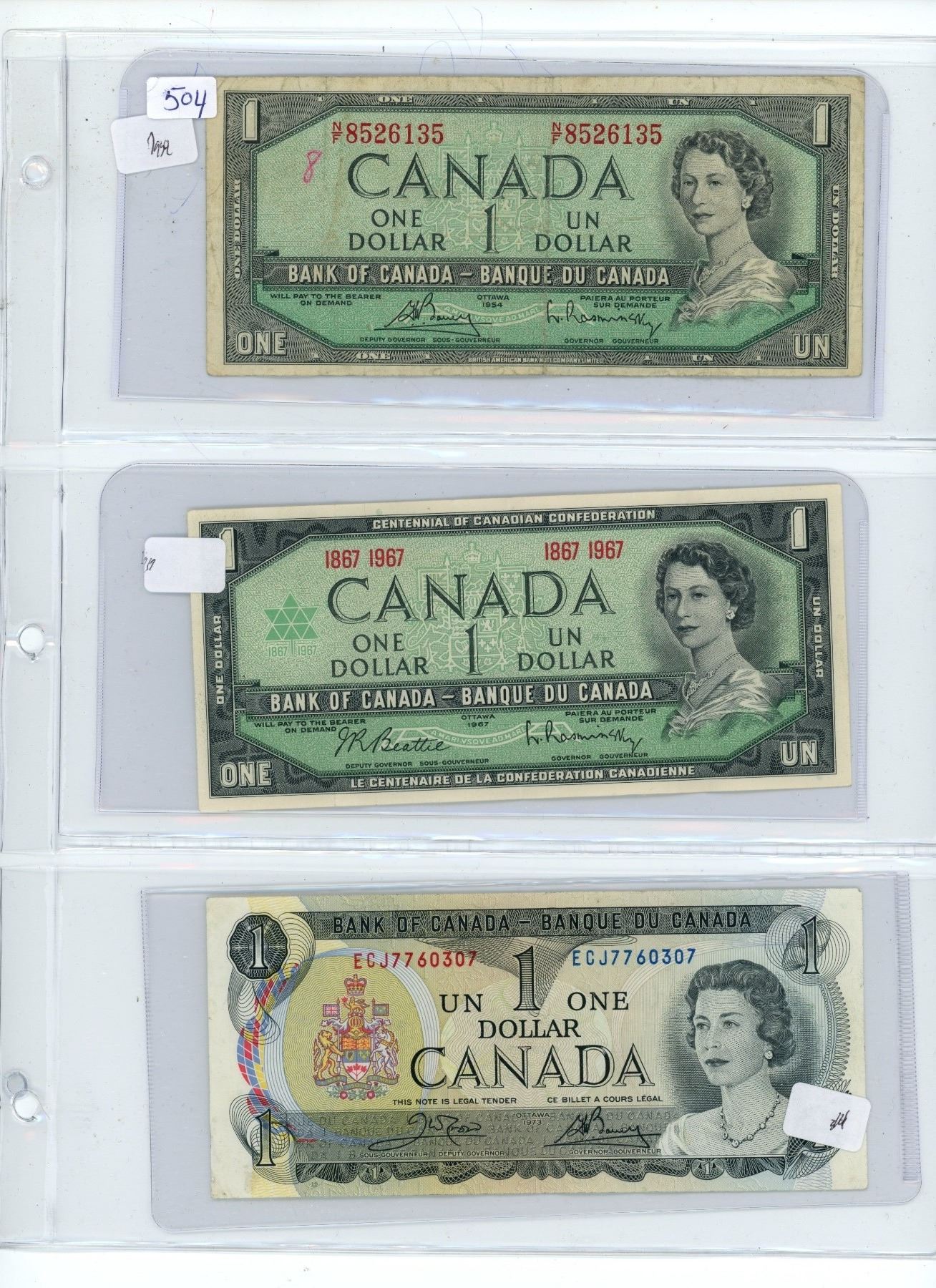 Lot of 3 (1954, 1967 and 1973) canadian $1 bills