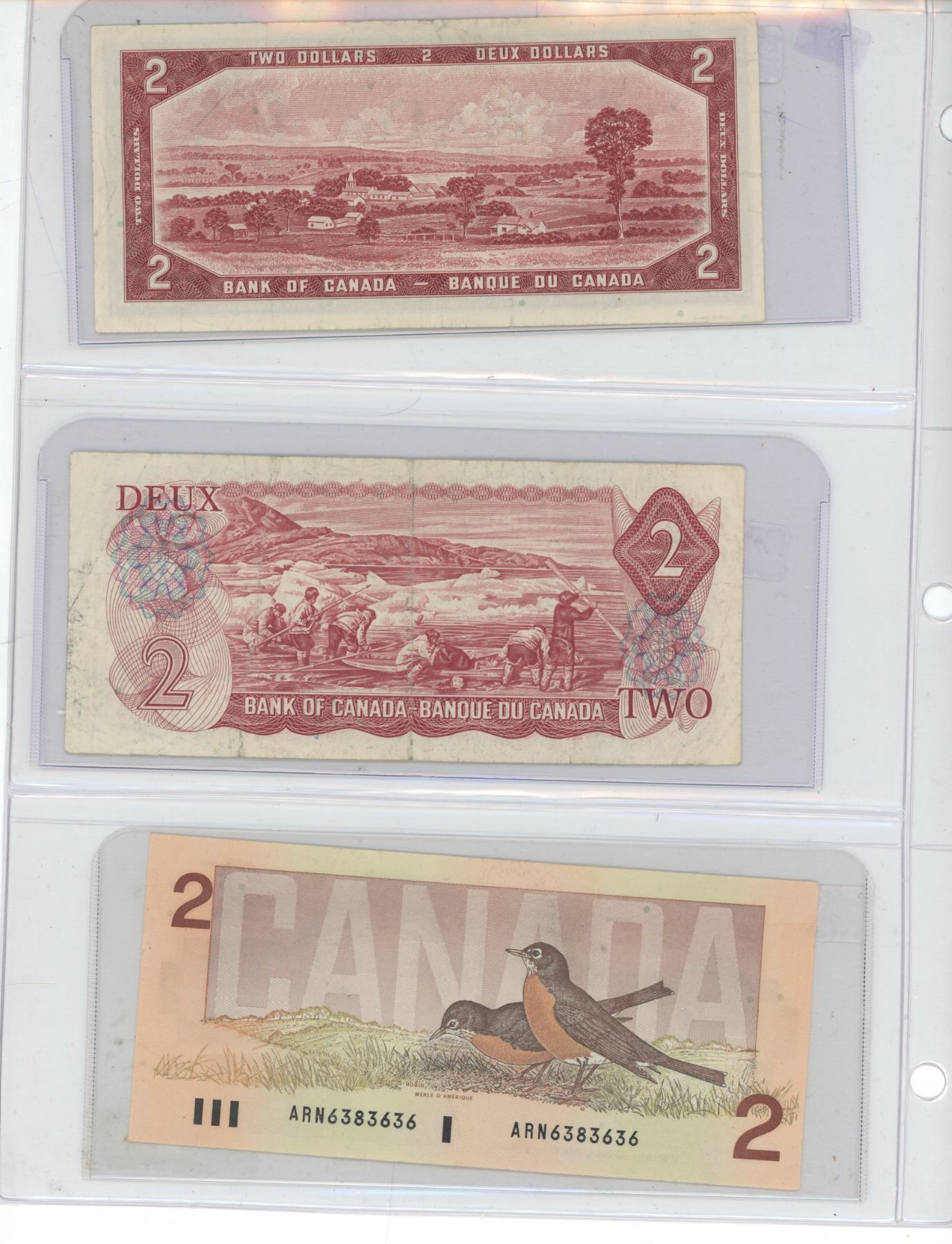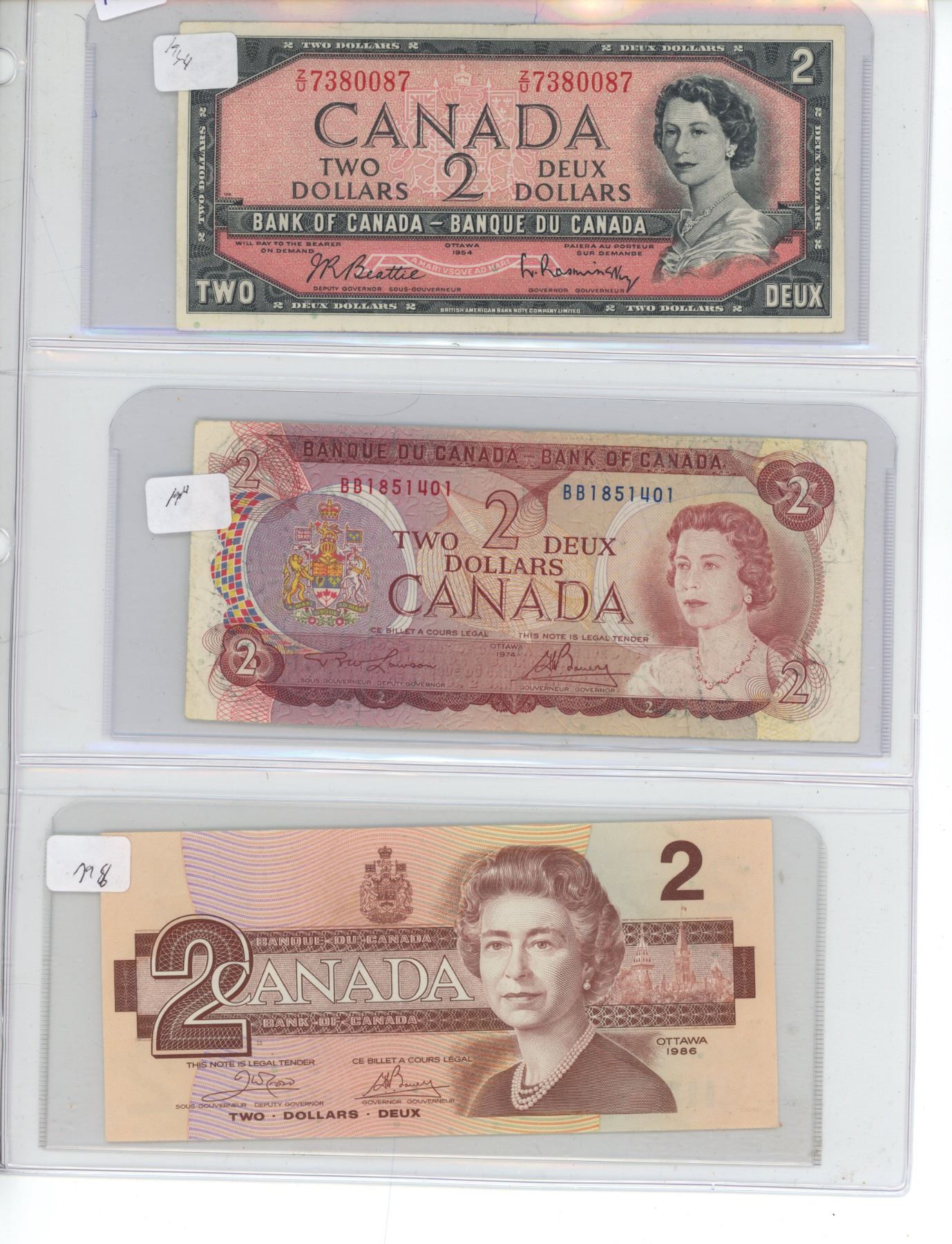 Lot of 3 (1954,1974, 1986) canadian $2 bills