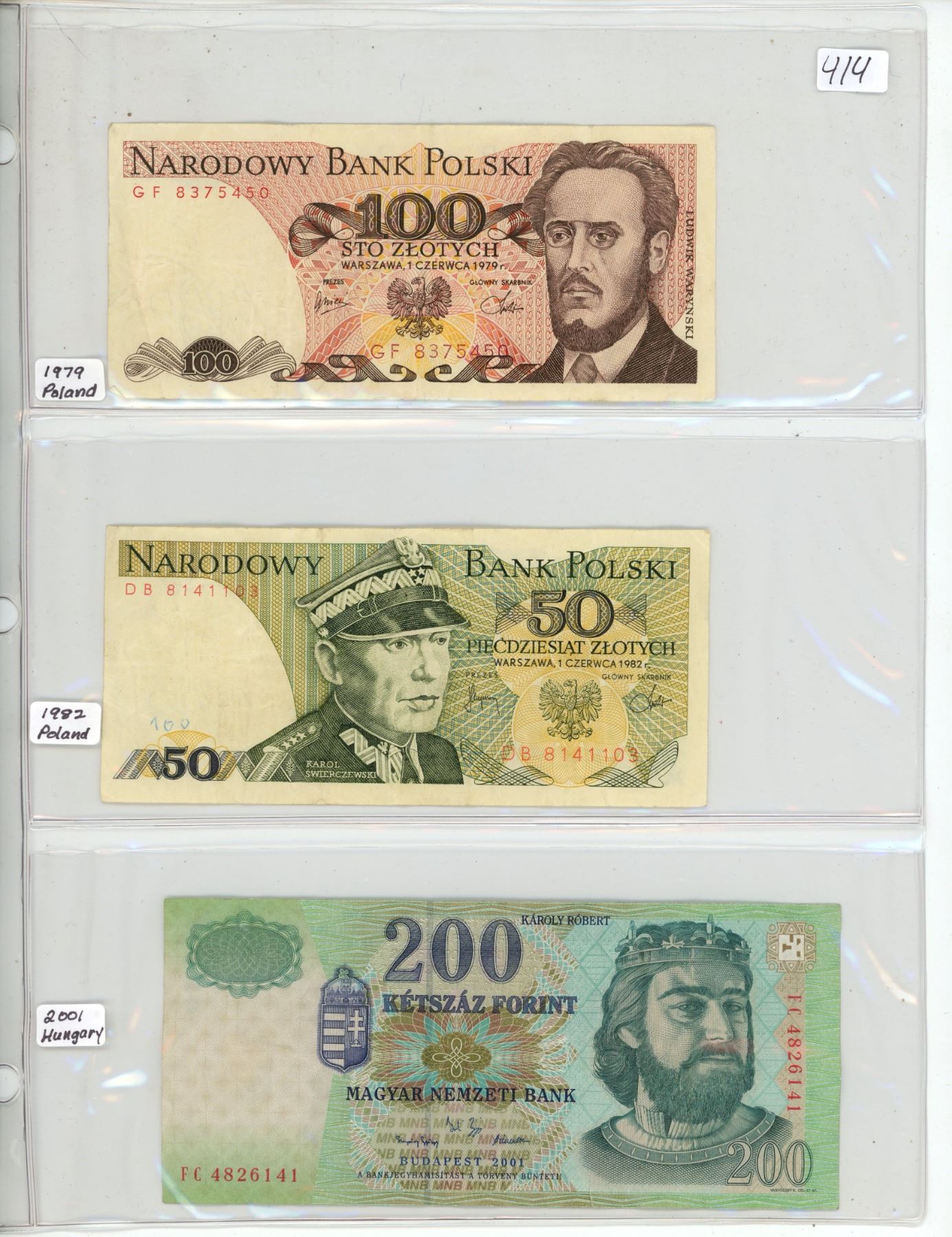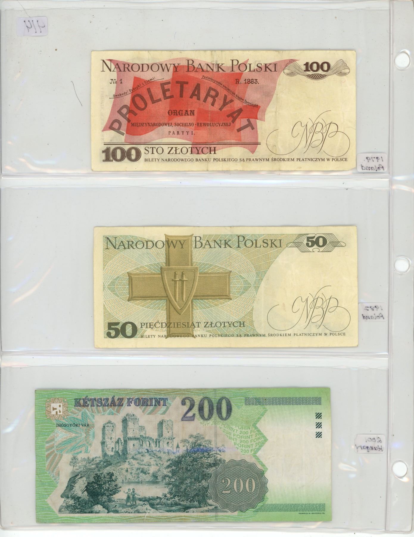 Lot of 3:1979 Poland 100 Zlotych,1982 Poland 50 Zlotych,2001Hungary 200 Forint