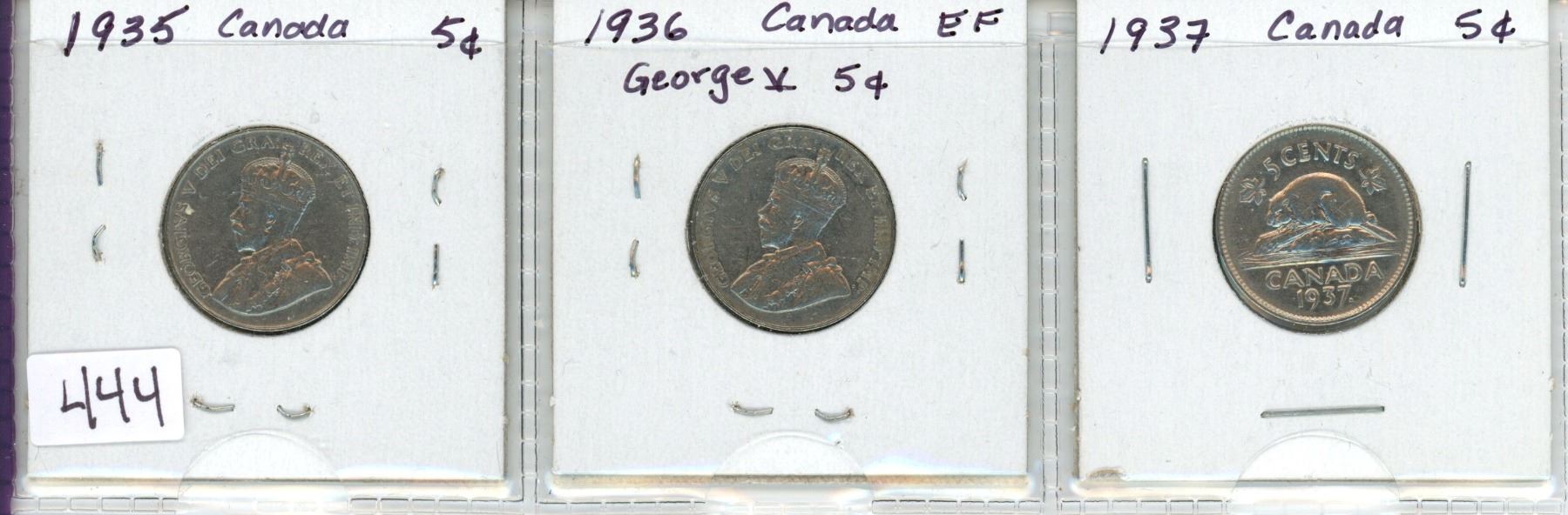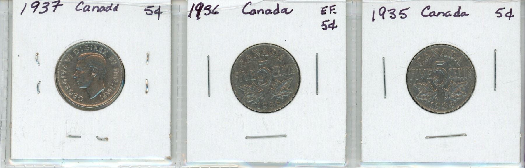 Lot of 3 Canada 5¢: 1935, 1936, 1937