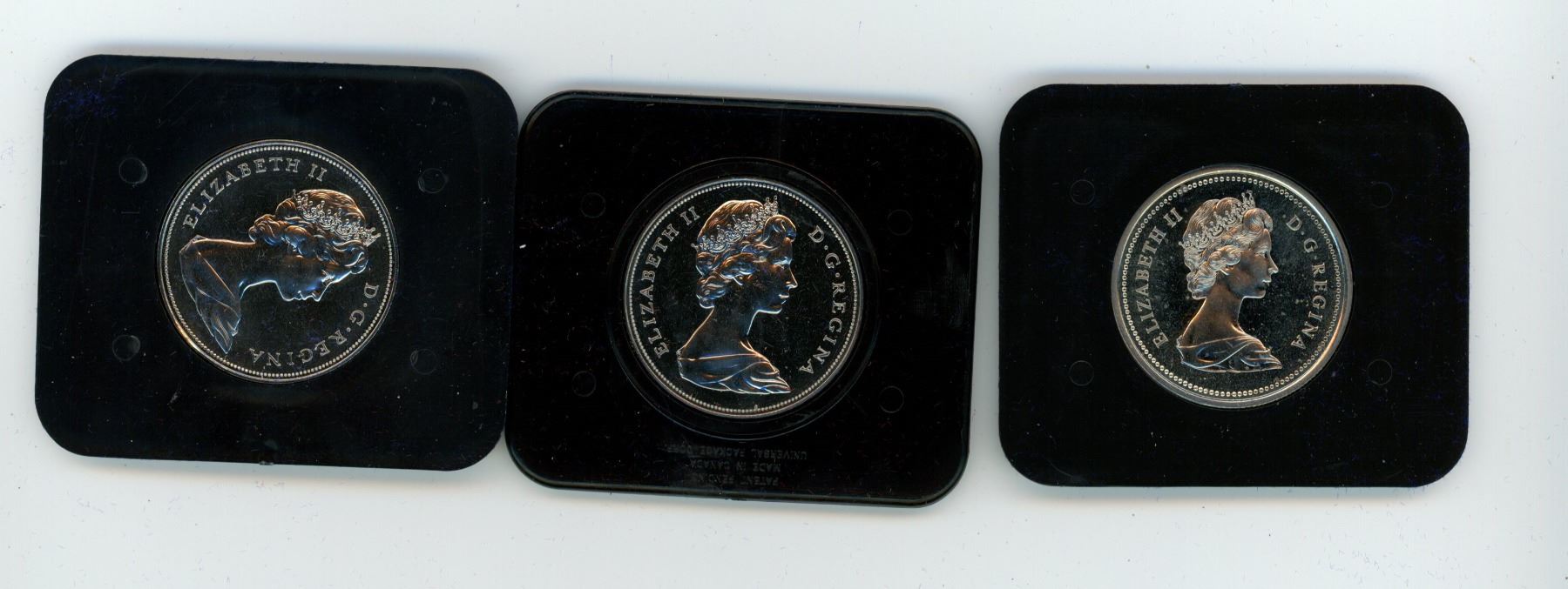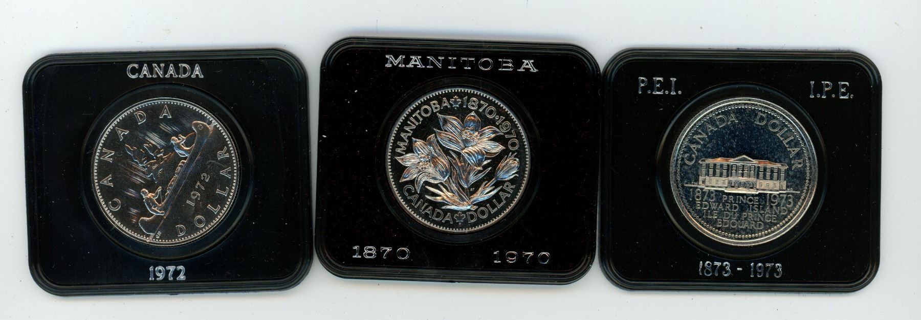 Lot of 3 Canada Dollars: 1970, 1972, 1973