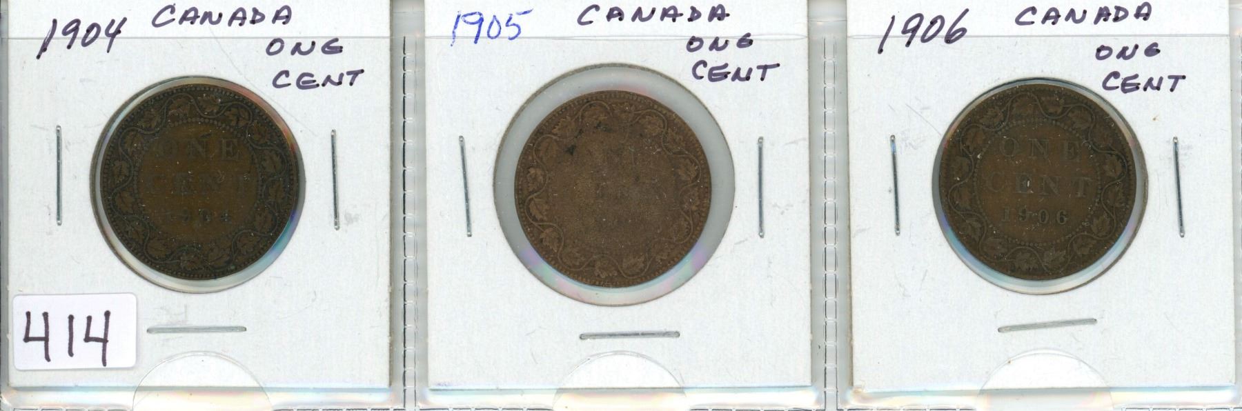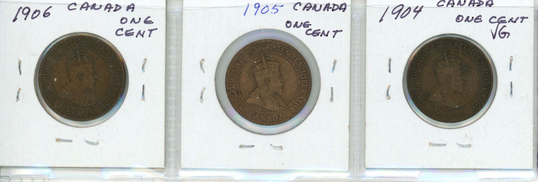 Lot of 3 Canada Large Cents: 1904, 1905, 1906