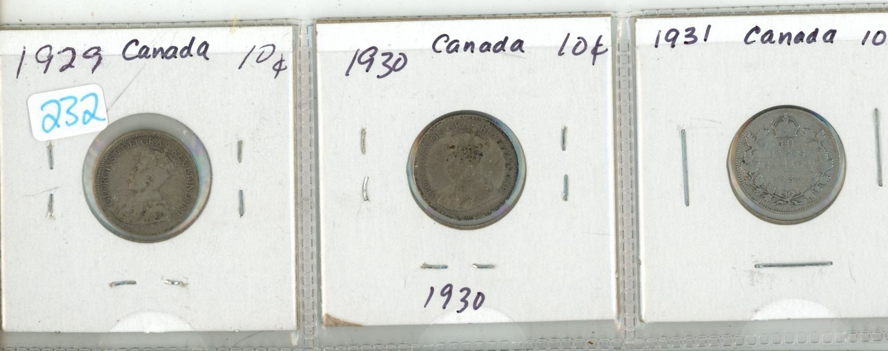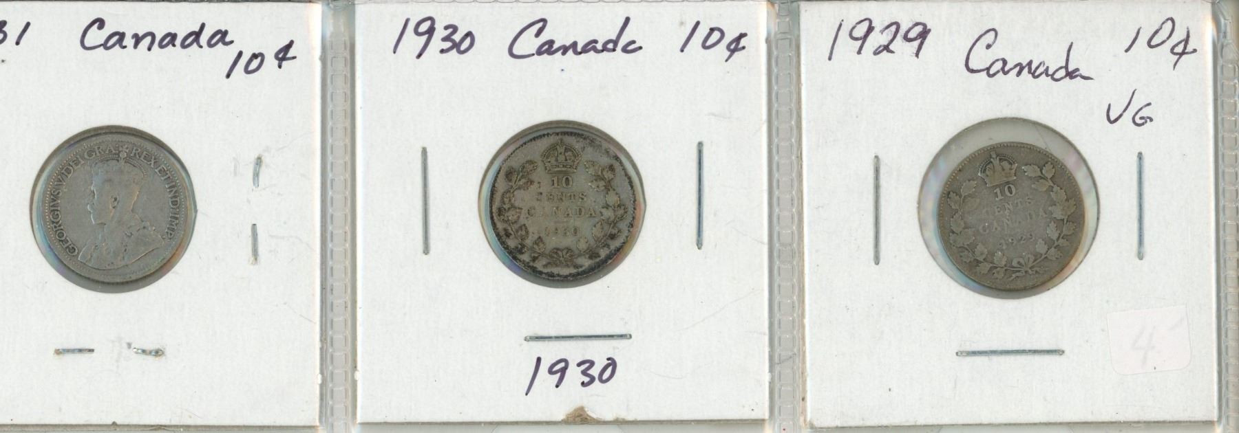 Lot of 3 Canada Silver 10¢: 1929 - 1931