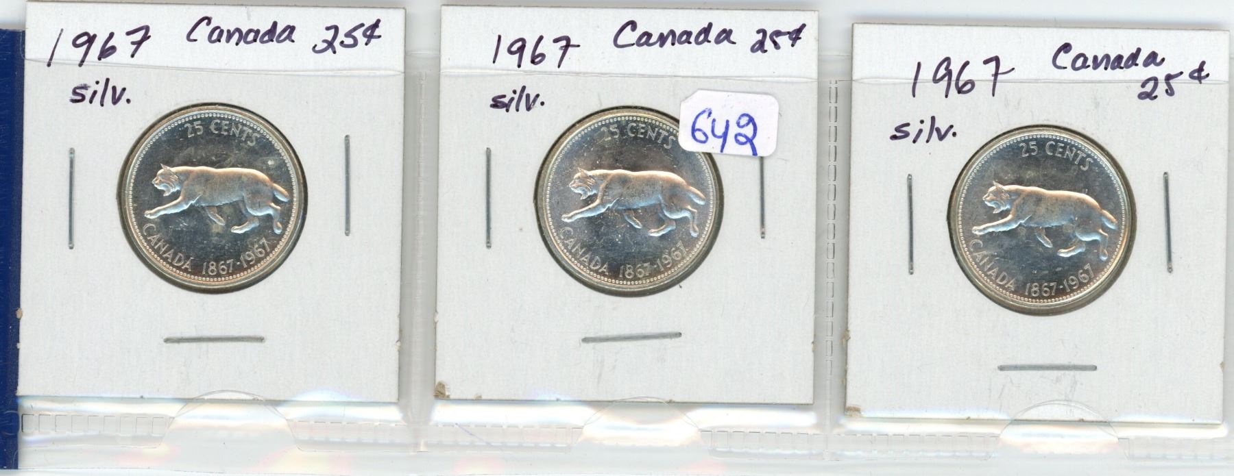 Lot of 3 Canada Silver 25¢: 1967 (x3)