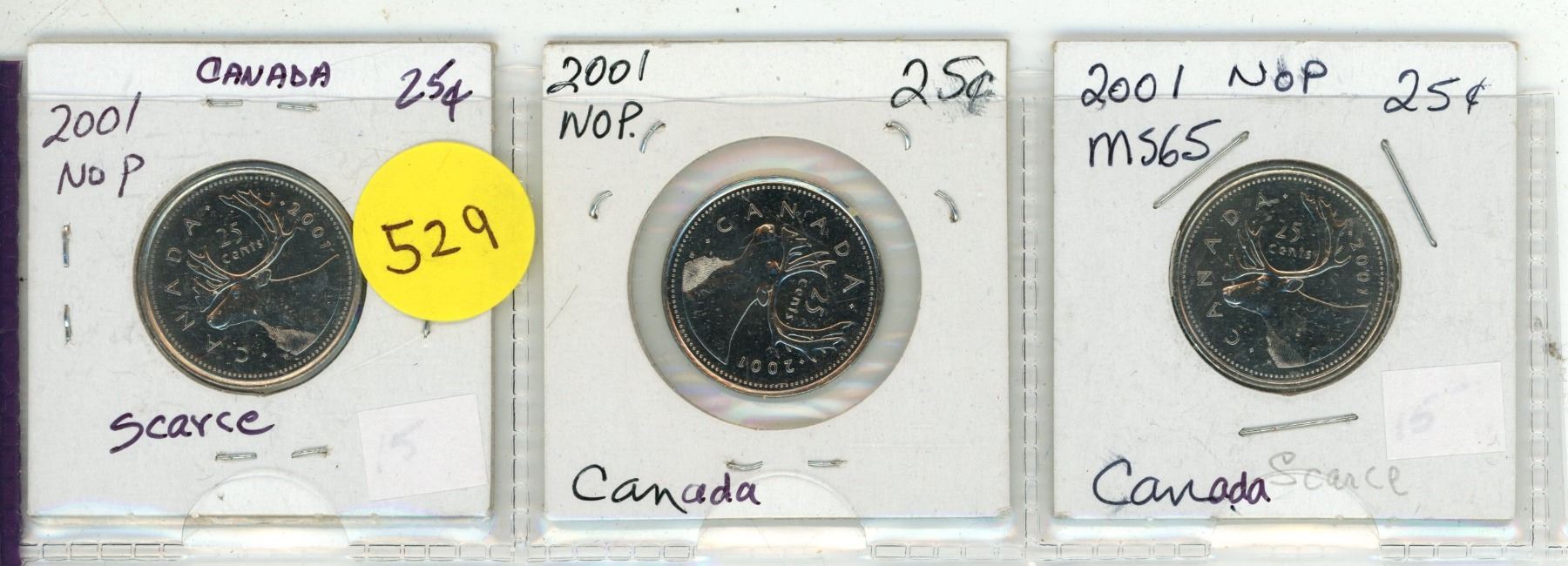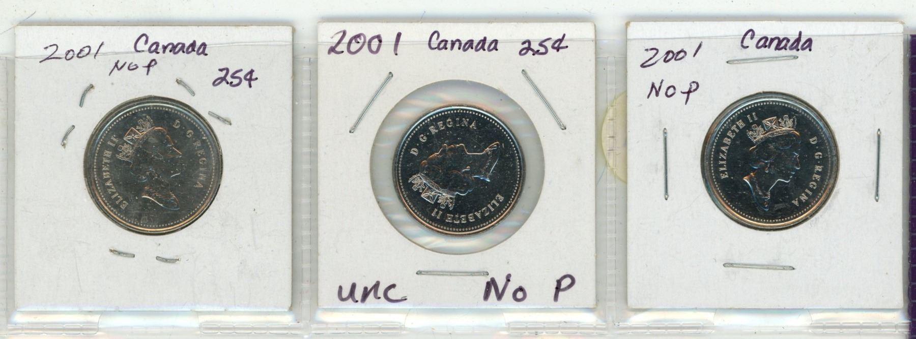 Lot of 3 Canada Silver SCARCE 2001 No P 25¢