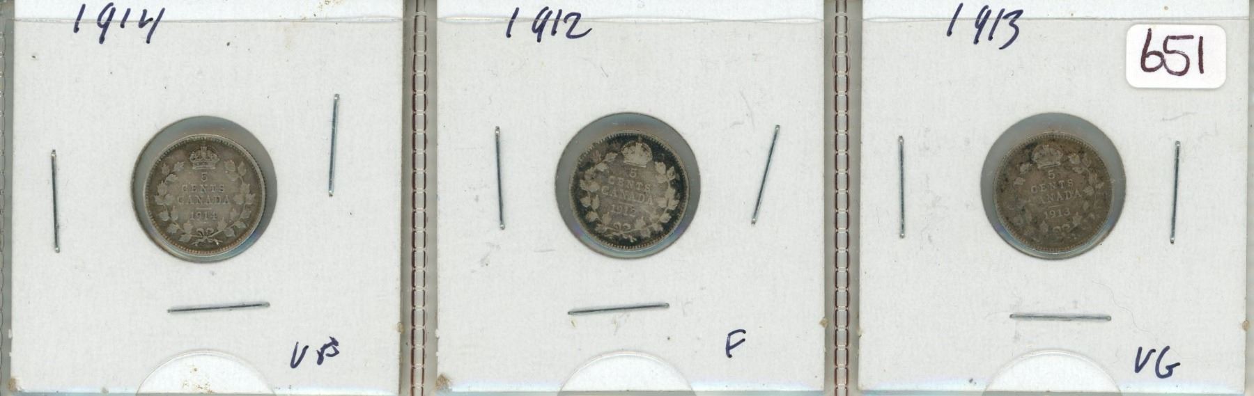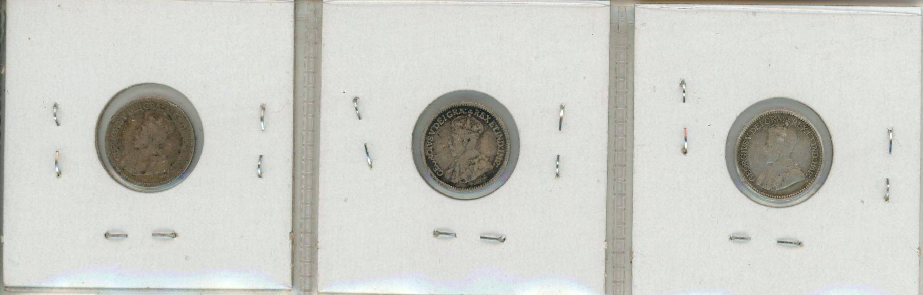 Lot of 3 Canadian silver dimes - 1912, 1913, 1914