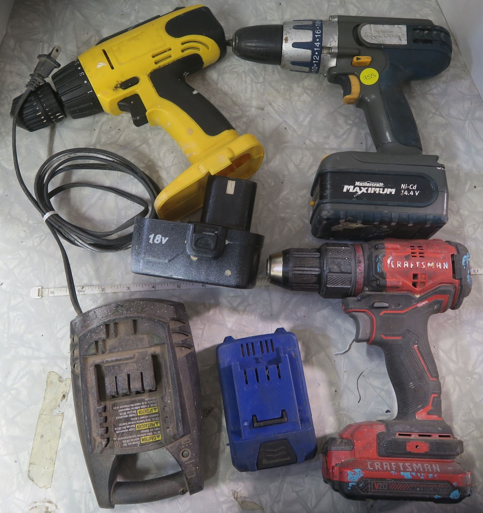 ]Lot of 3 Cordless Drills, Batteries + Charger (Don't Match Each Other)