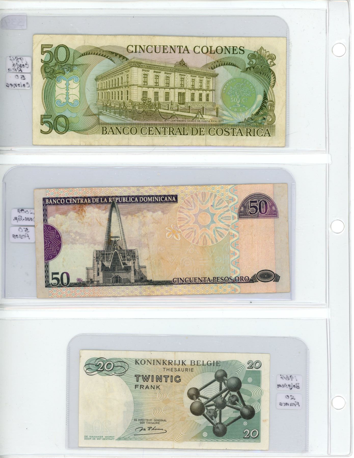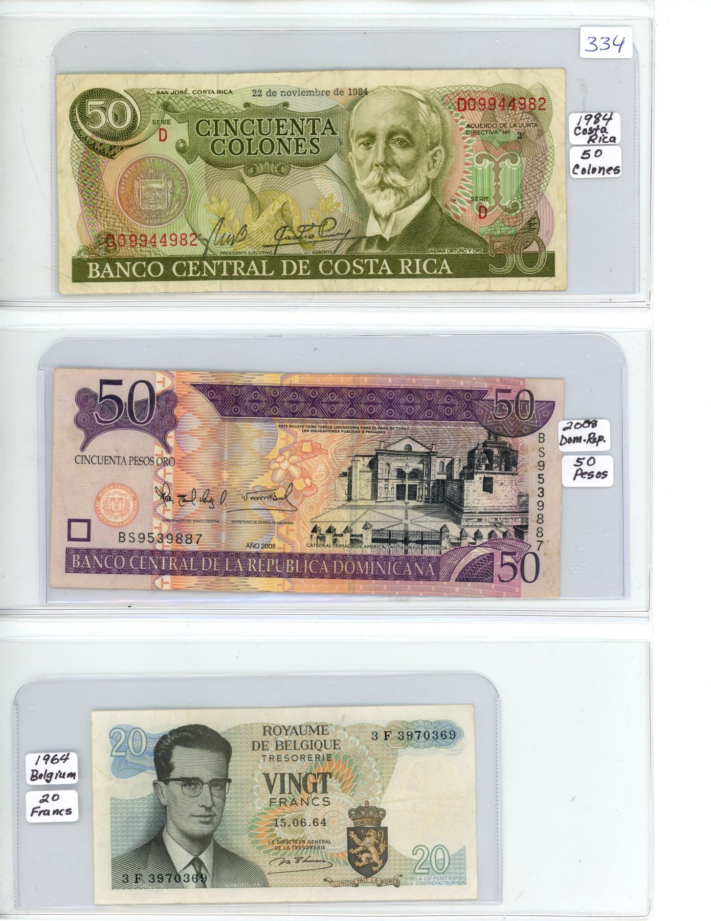 Lot of 3 Foreign bills: Costa Rica, Dominican Republic, Belgium
