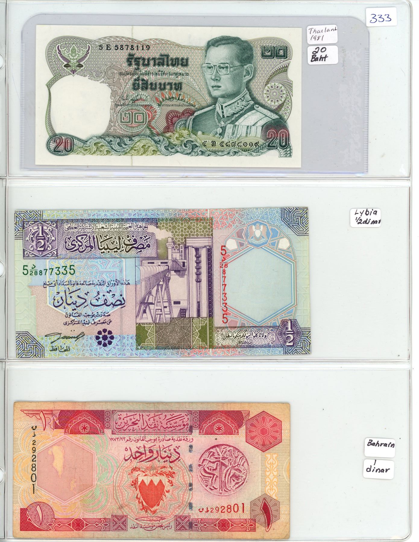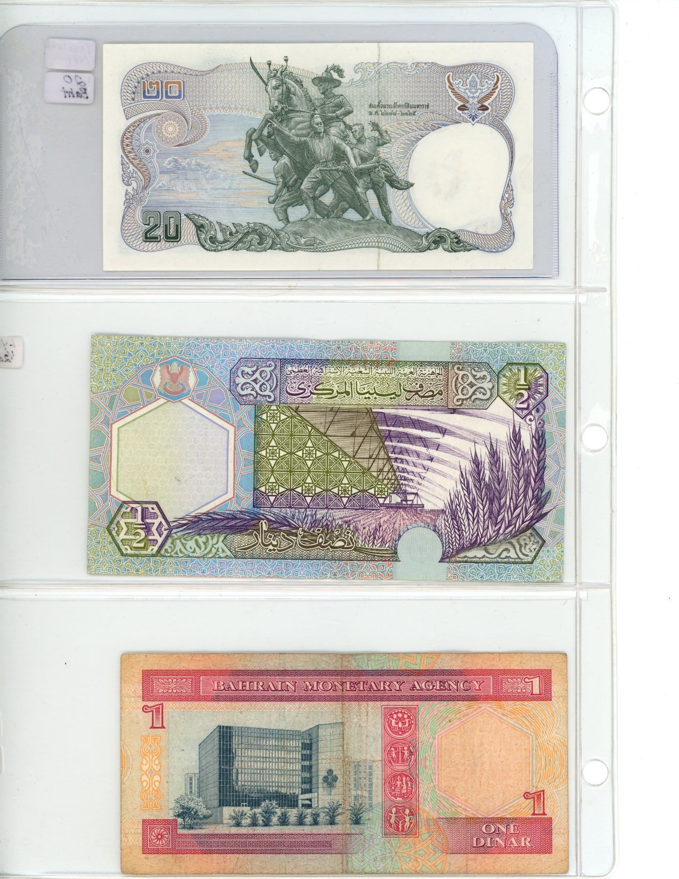 Lot of 3 Foreign bills: Thailand, Lybia, Bahrain