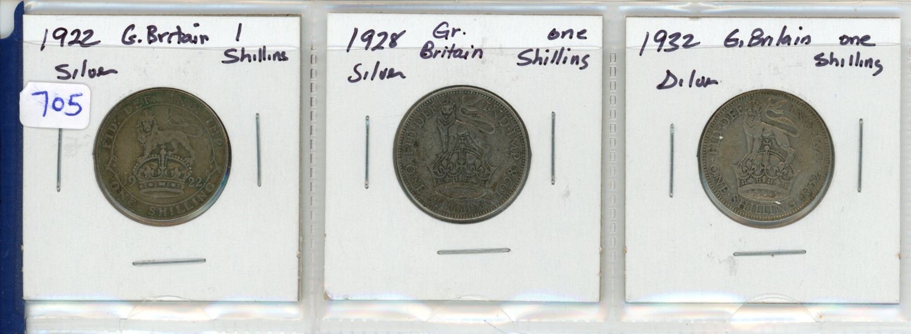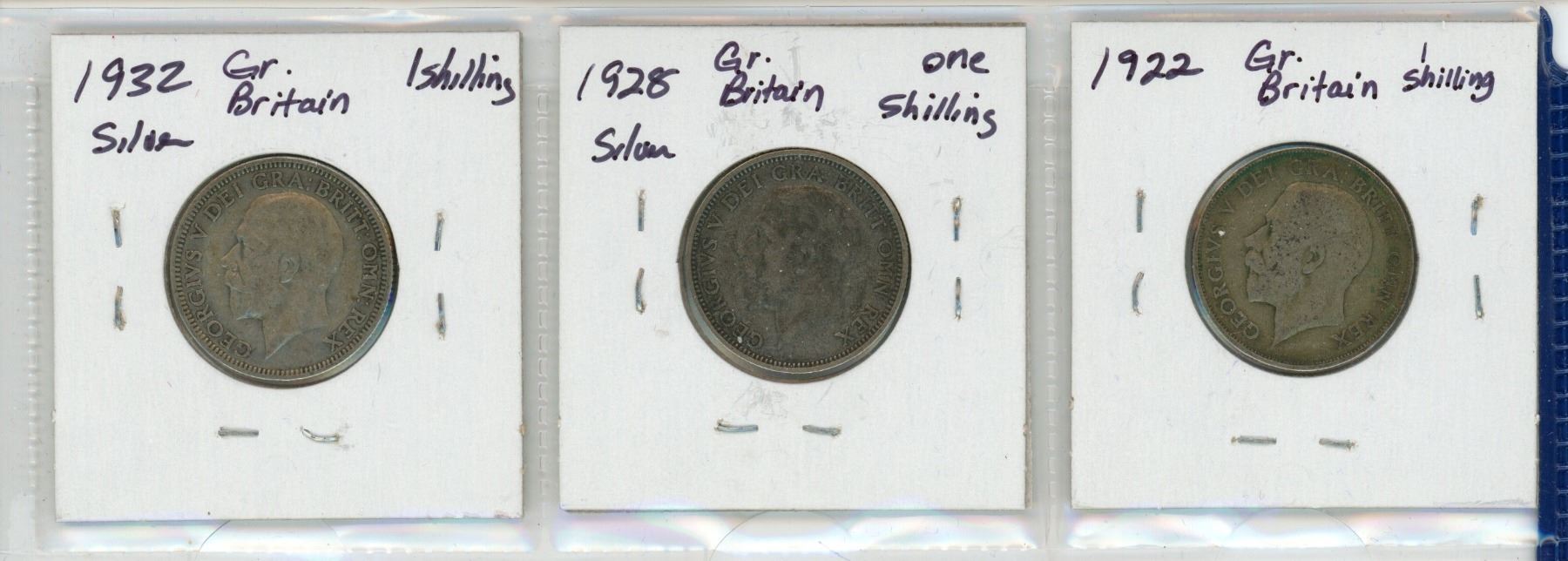 Lot of 3 Great Britain Silver 1 Shilling: 1922, 1928, 1932