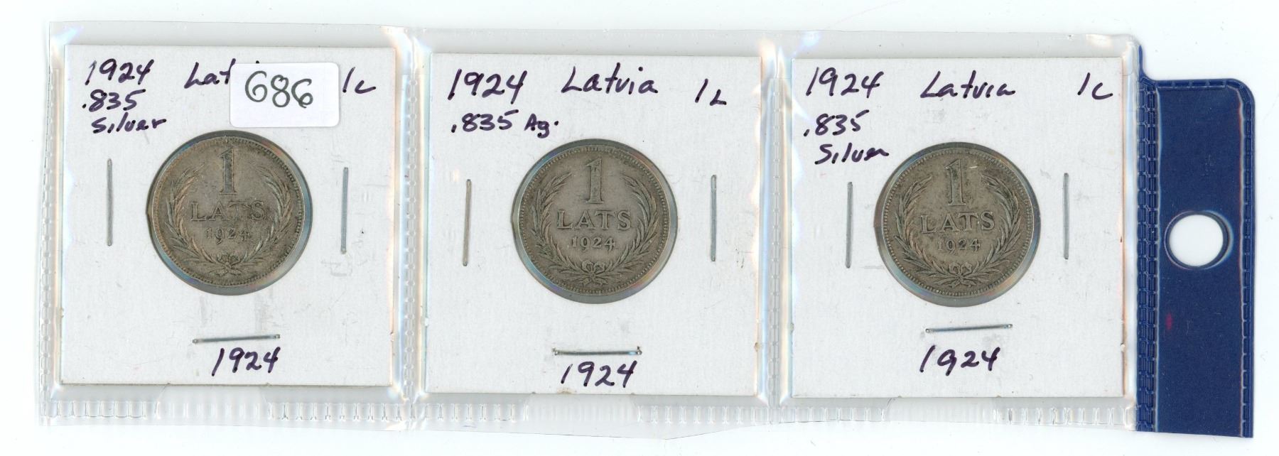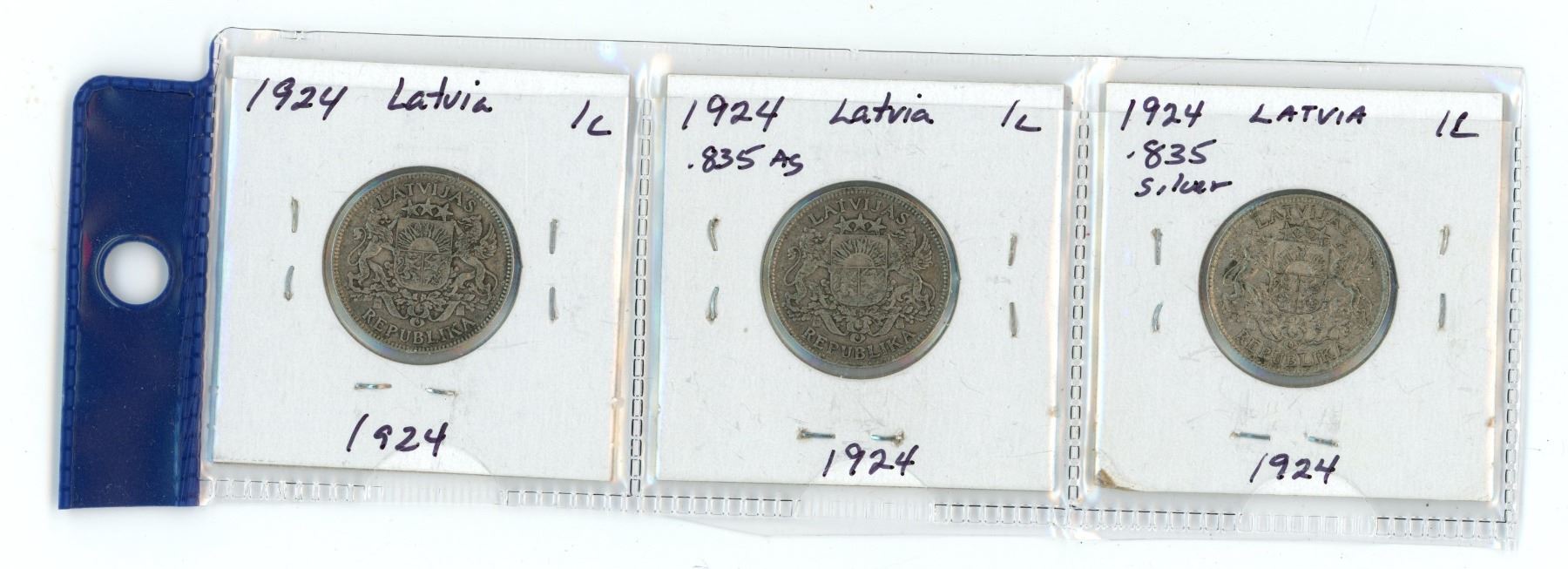 Lot of 3 Lativa 1924 silver one lats coins
