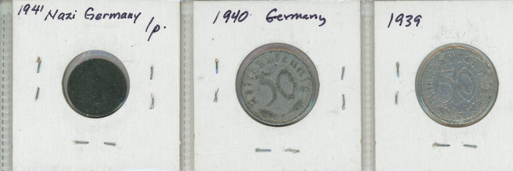 Lot of 3: Nazi Germany 1939 & 1940 Fifty Pfennig & 1941 1 Pfennig