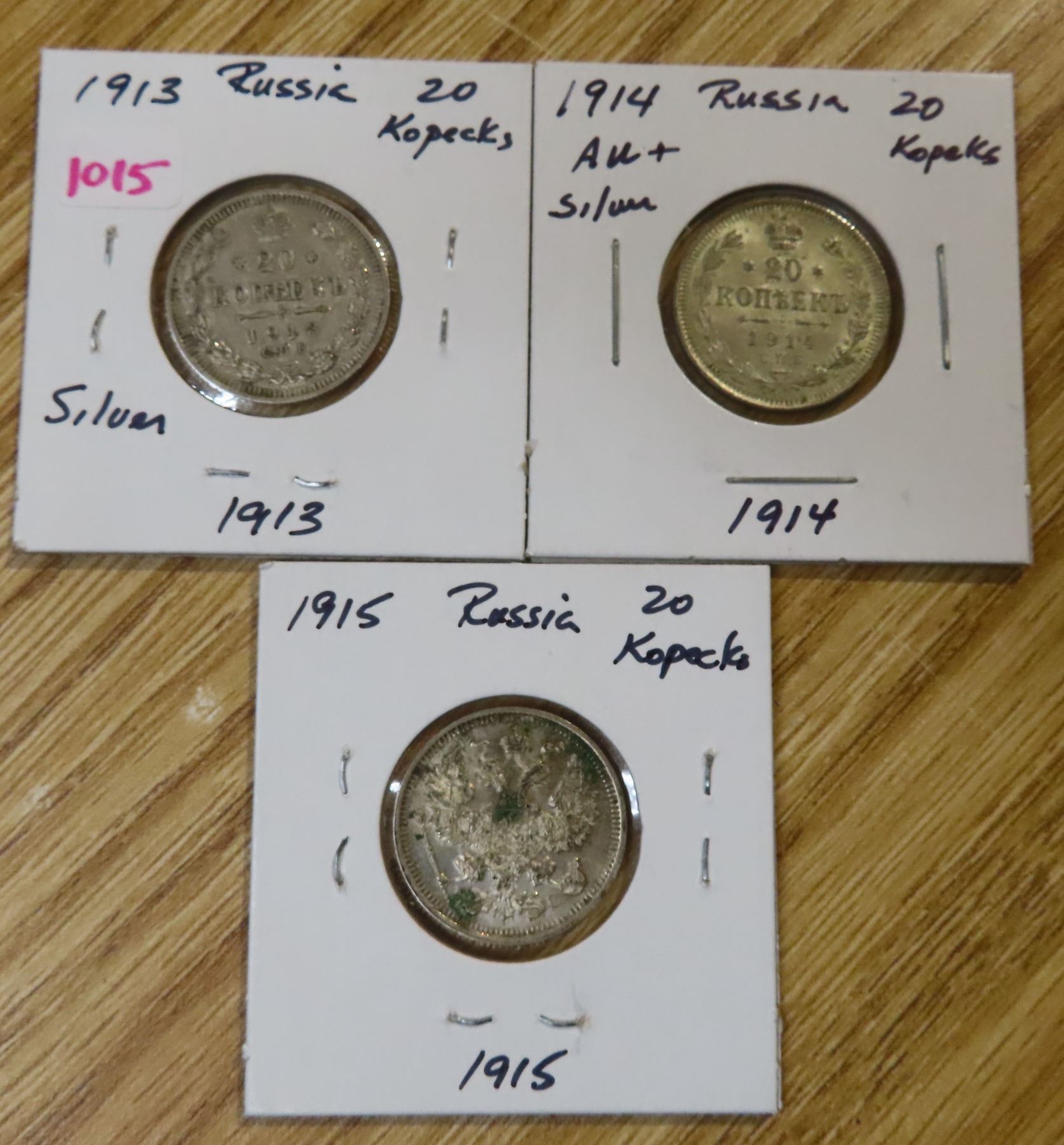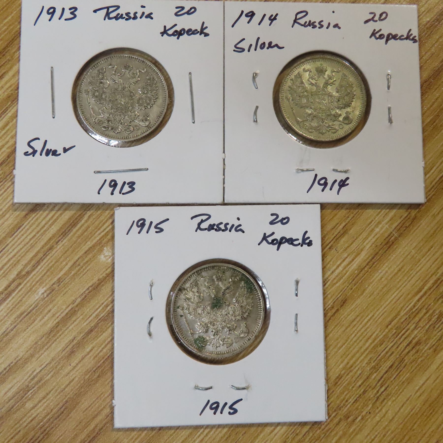 Lot of 3 Russia Silver 20 Kopecks: 1913 - 1915