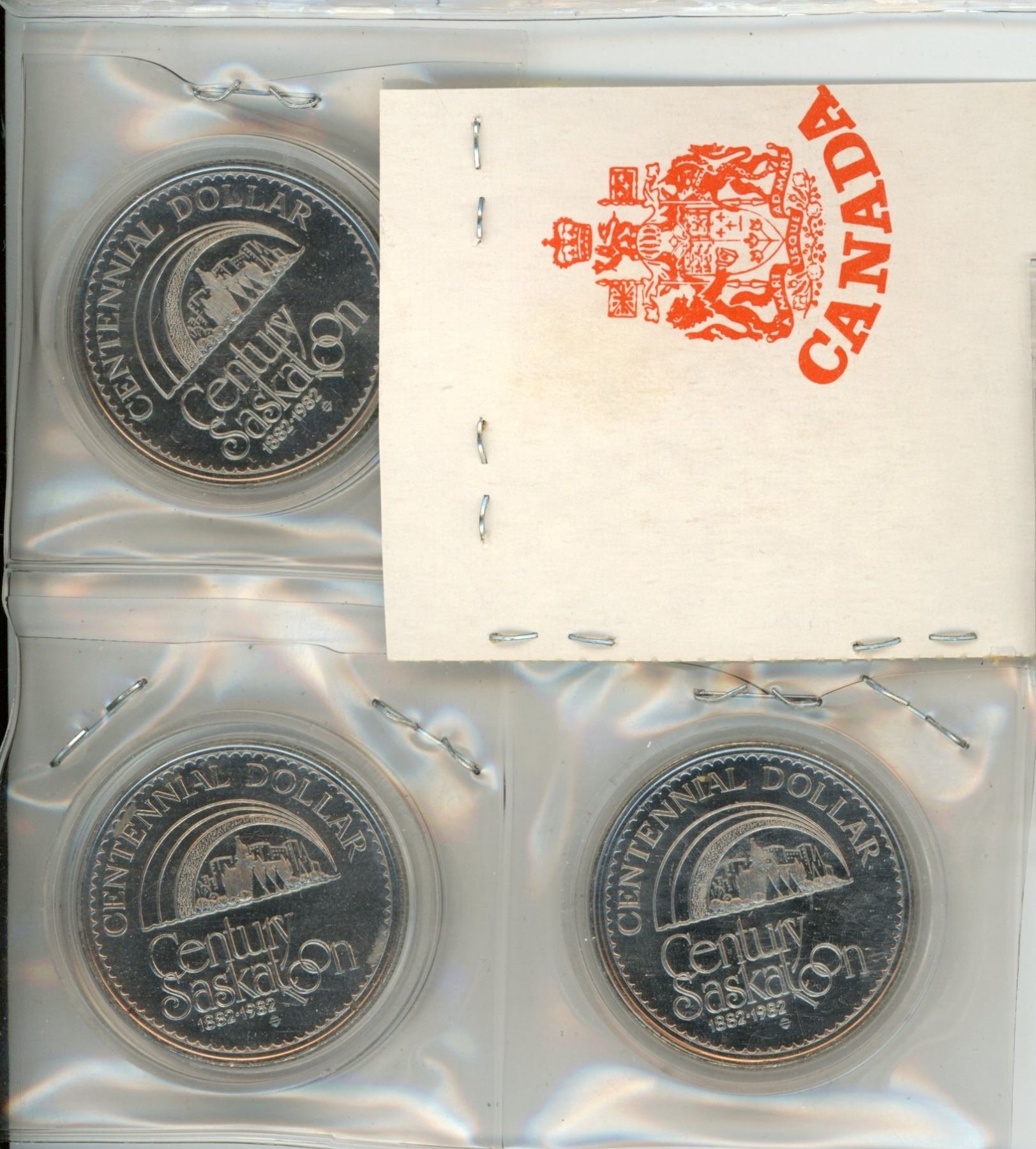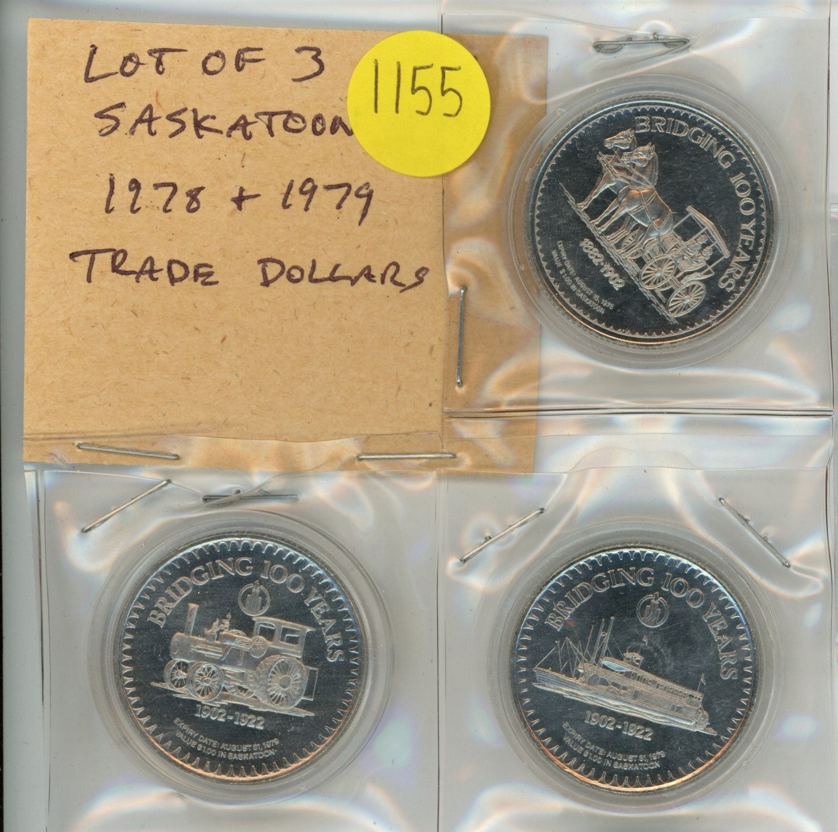 Lot of 3 Saskatoon 1978 & 1979 Trade Dollars. Horse & Buggy, Tractor & Paddle Wheeler. BU.