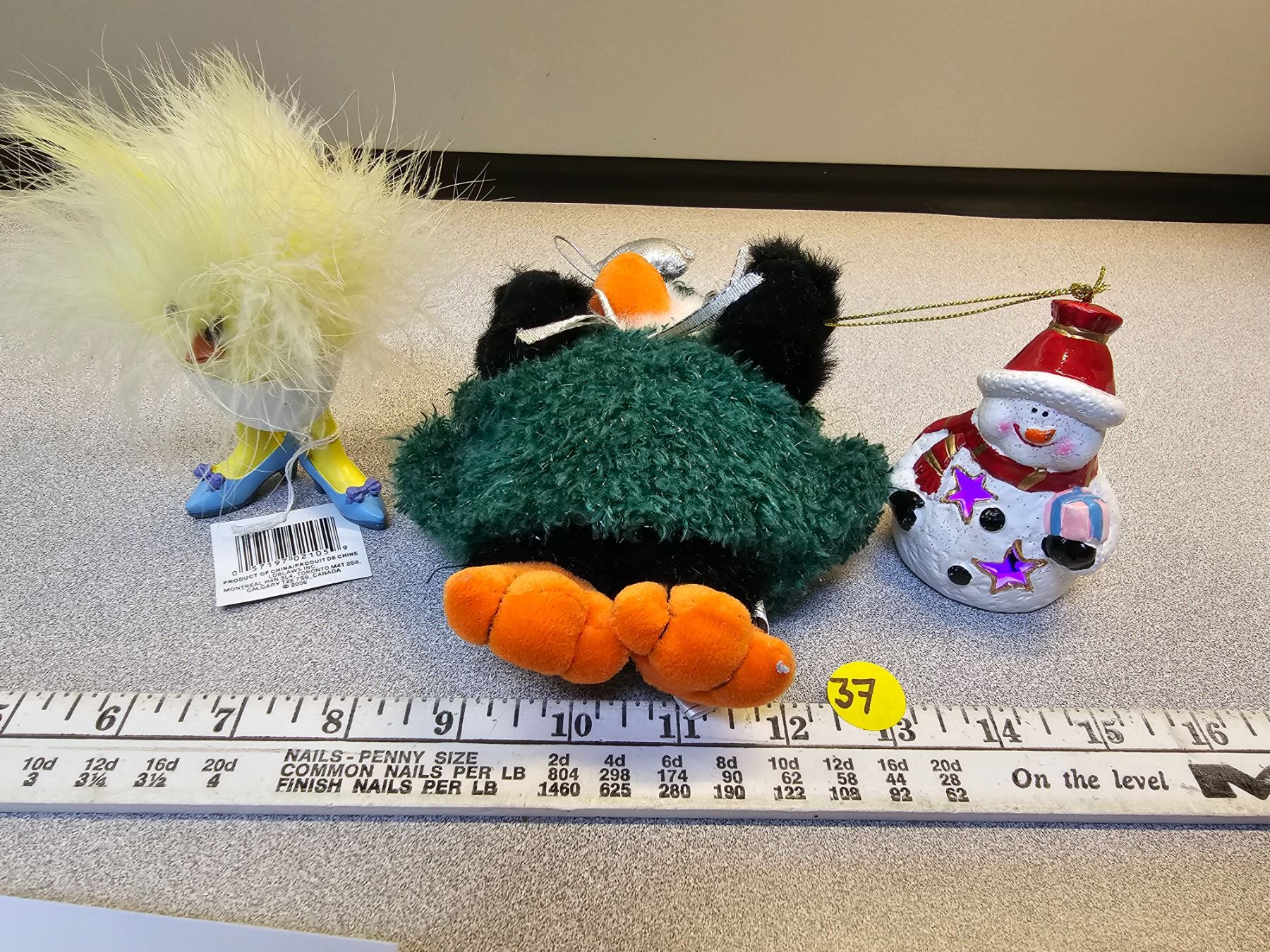 Lot of 3 cute decorations - light up snowman xmas tree oranament, Easter chick etc.