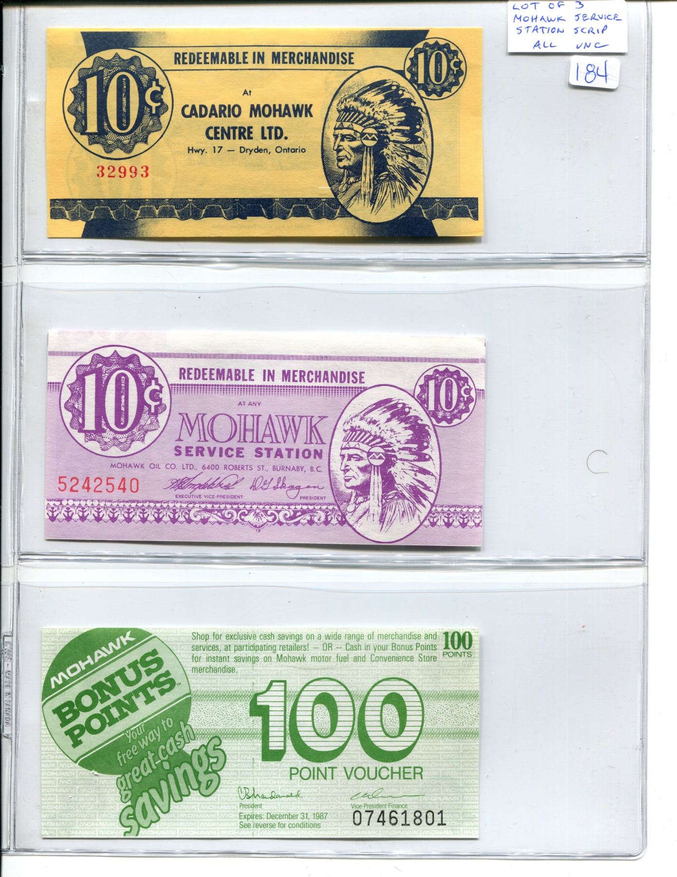 Lot of 3 different Mohawk Service Station Scrip. All Unc.