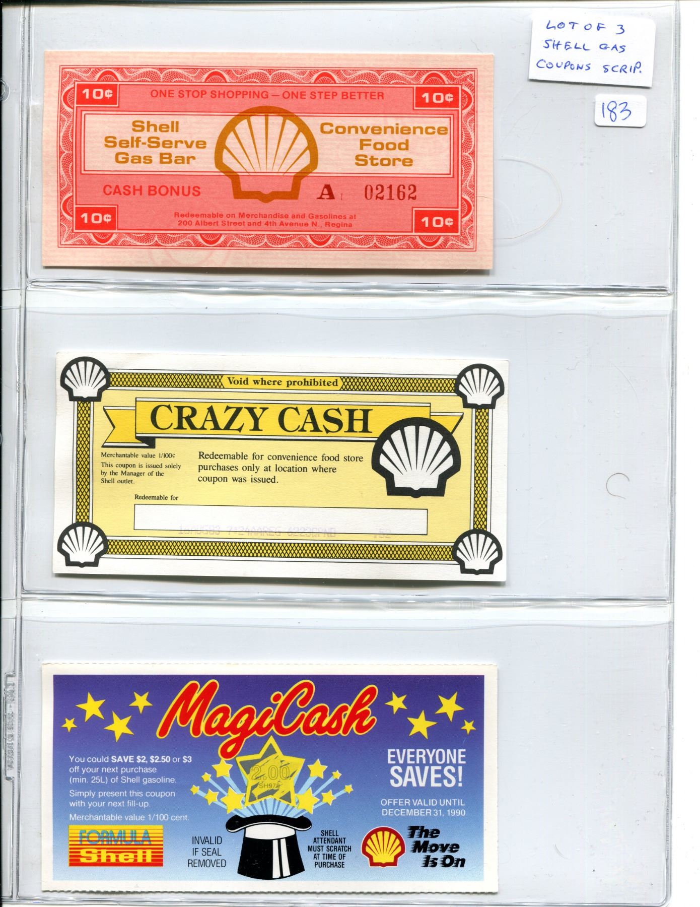 Lot of 3 different Shell Gas Coupons Scrip.