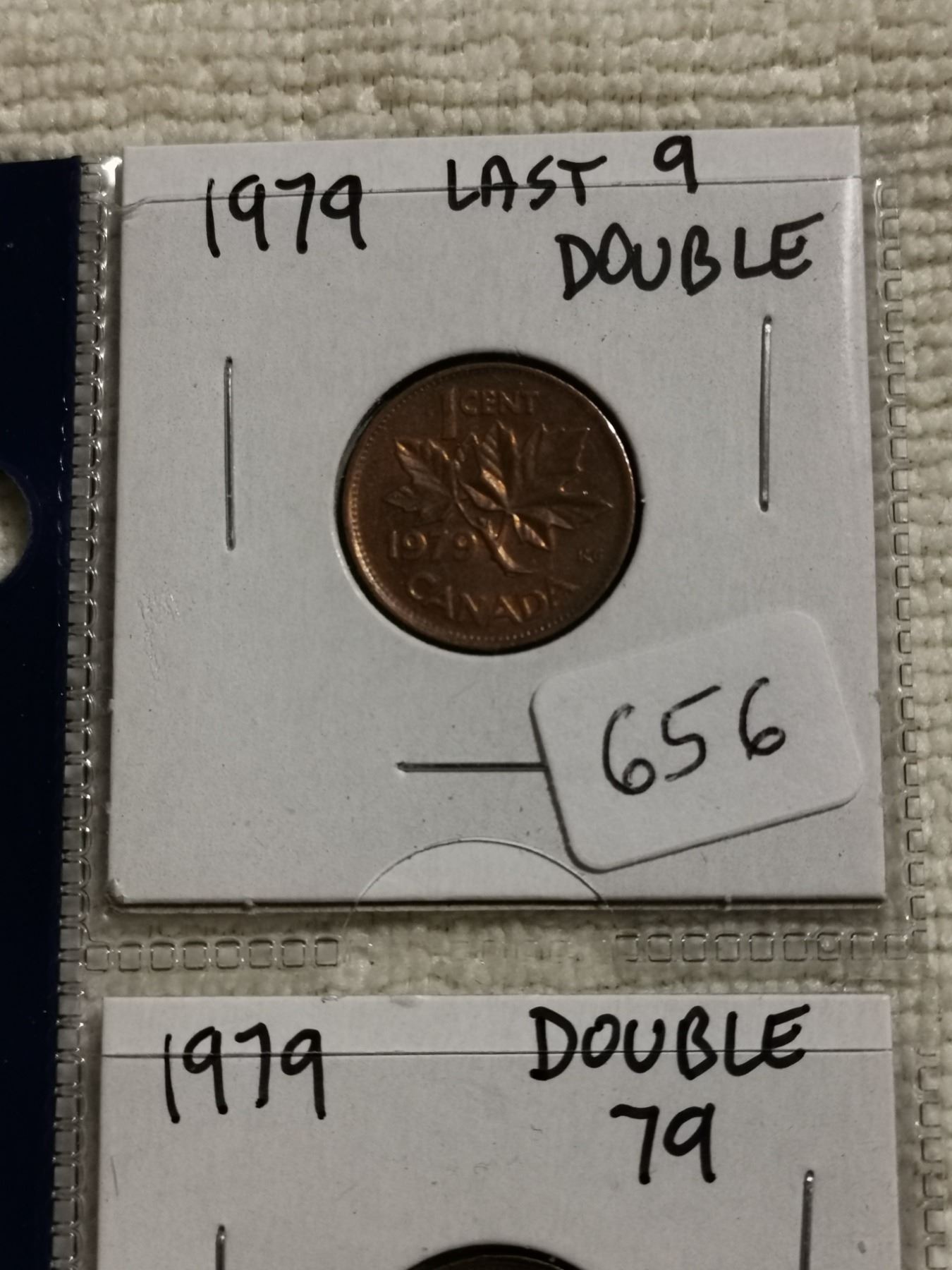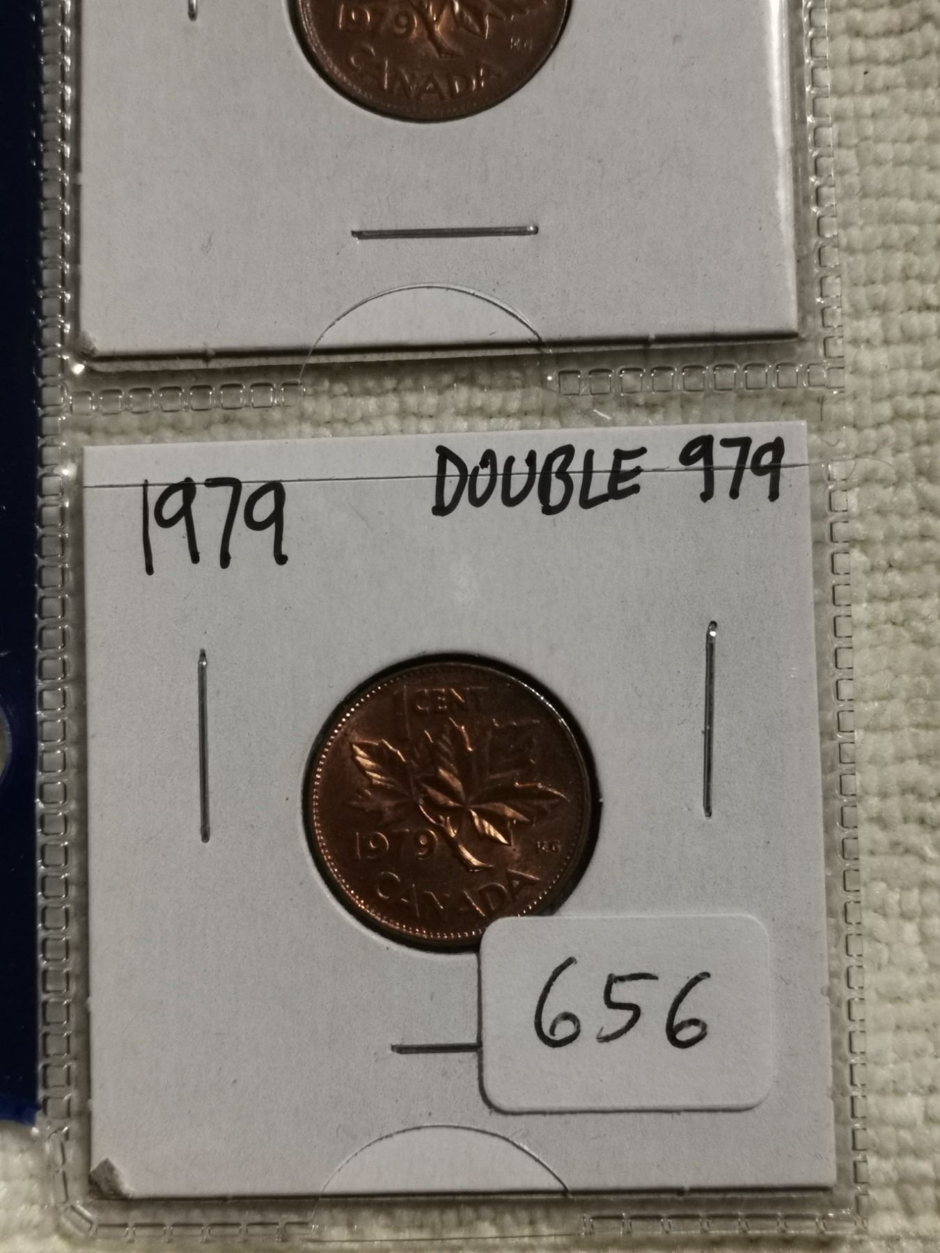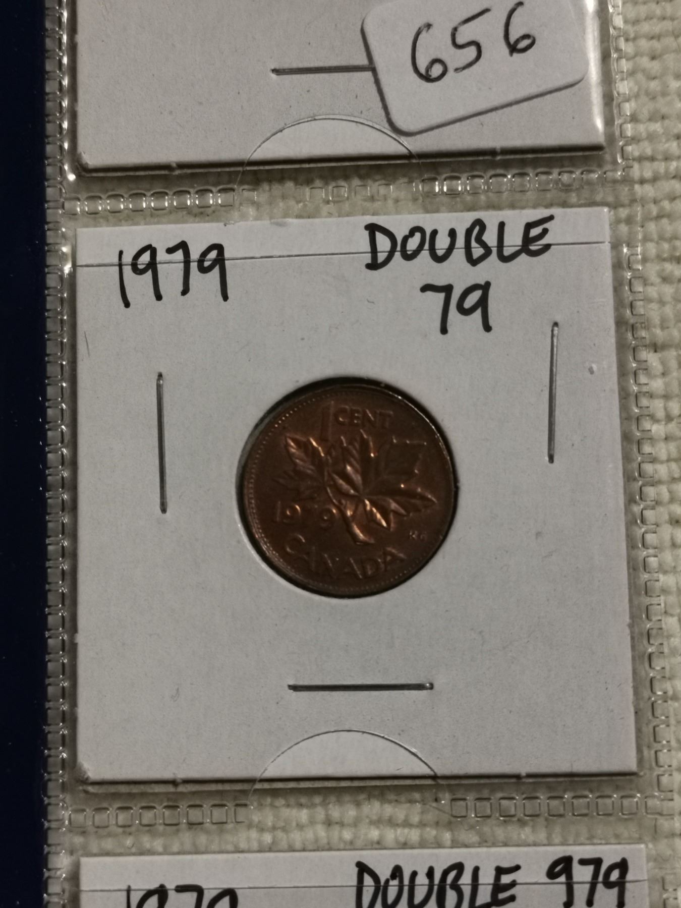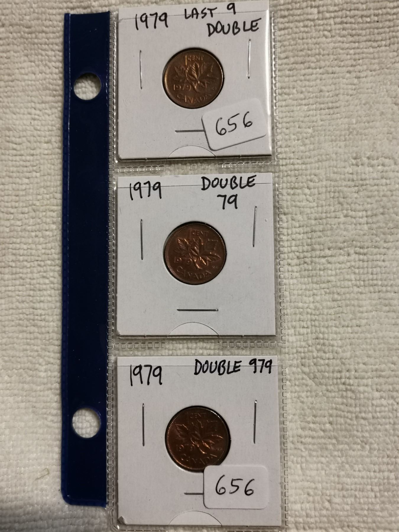 Lot of 3 error 1979 1 cent coins, double 9, 79, 979