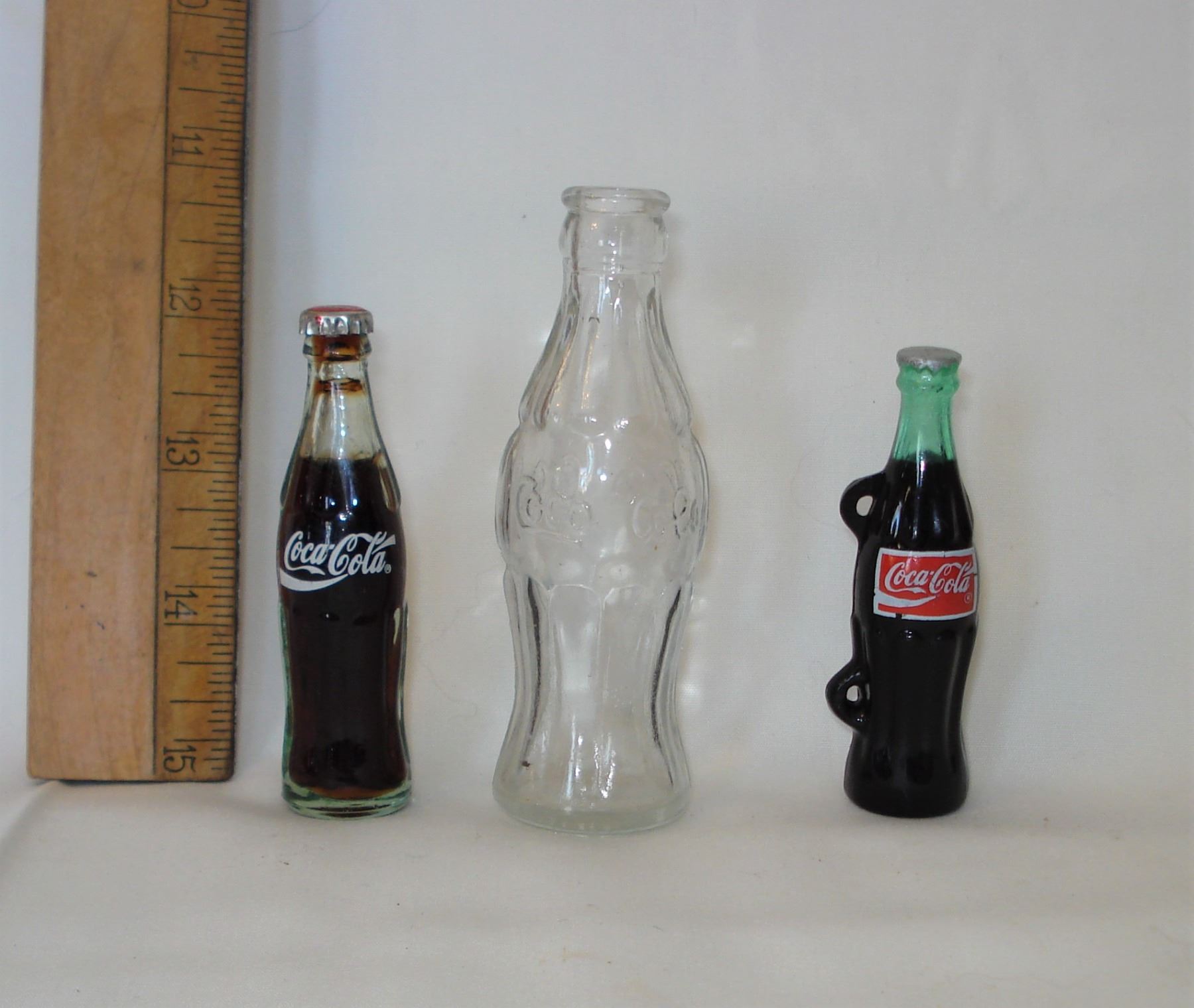 Lot of 3 mini Coke Bottles 2 glass 1 plastic